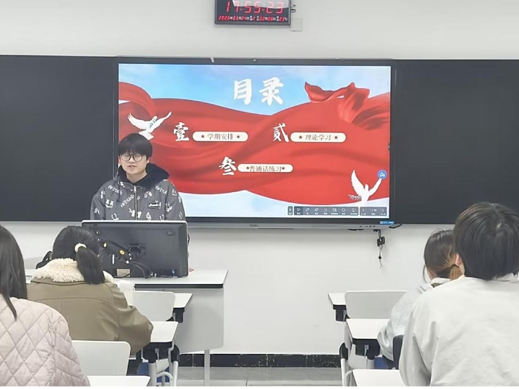 会议伊始,主持人王国豪对本学期整体工作安排进行了系统部署,明确从3月至7月,宣讲团将有序开展微党课录制、晨课宣讲等重点活动,通过丰富多元的活动形式,全面提升成员宣讲专业能力,拓宽红色文化传播路径,让红色故事走进更多师生心中。针对近期宣讲工作推进情况,会议重点开展宣讲情况检查,郭英对宣讲同学的表现进行细致点评,既肯定了大家在宣讲过程中的用心筹备与精彩表现,也针对宣讲内容打磨、语言表达节奏、情感传递方式等方面存在的问题提出具体改进建议,为成员后续提升宣讲水平指明了方向。