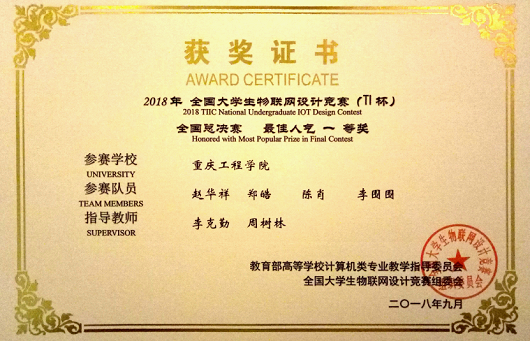 2018年TI杯全国大学生物联网设计竞赛(全国总决赛)近日在无锡太湖国际博览中心落下帷幕,来自全国5个分赛区遴选出的100余所高校、120支团队经过两天的激烈角逐。我院李克勤、周树林老师指导的《无网覆盖随行通》通过与上海交通大学,武汉大学,四川大学等高校的同台竞技,最终获得了本次比赛一等奖,同时还荣获本次比赛最佳人气奖。