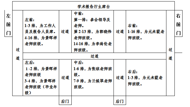 1.请各辅导员提前5分钟组织好本班级学生按指定区域就座。
