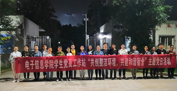 为加强学生党员与同学们的实际联系,发挥学生党员在宿舍的先锋模范带头作用。电子信息学院党员工作站于2019年5月15日在和园三号、和园四号学生公寓开展“共创整洁环境 共建和谐宿舍”主题党日活动。