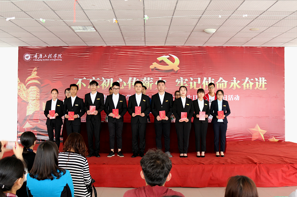 李贵容、谭万富、罗云峰、李强、郑亿6名同志为中共预备党员的通知后,主席台领导为新党员佩戴党徽,随后举行了庄严的入党宣誓仪式并现场缴纳政治生涯中的第一次党费,全体老党员也跟着重温入党誓词。新党员代表谭万富进行了发言。