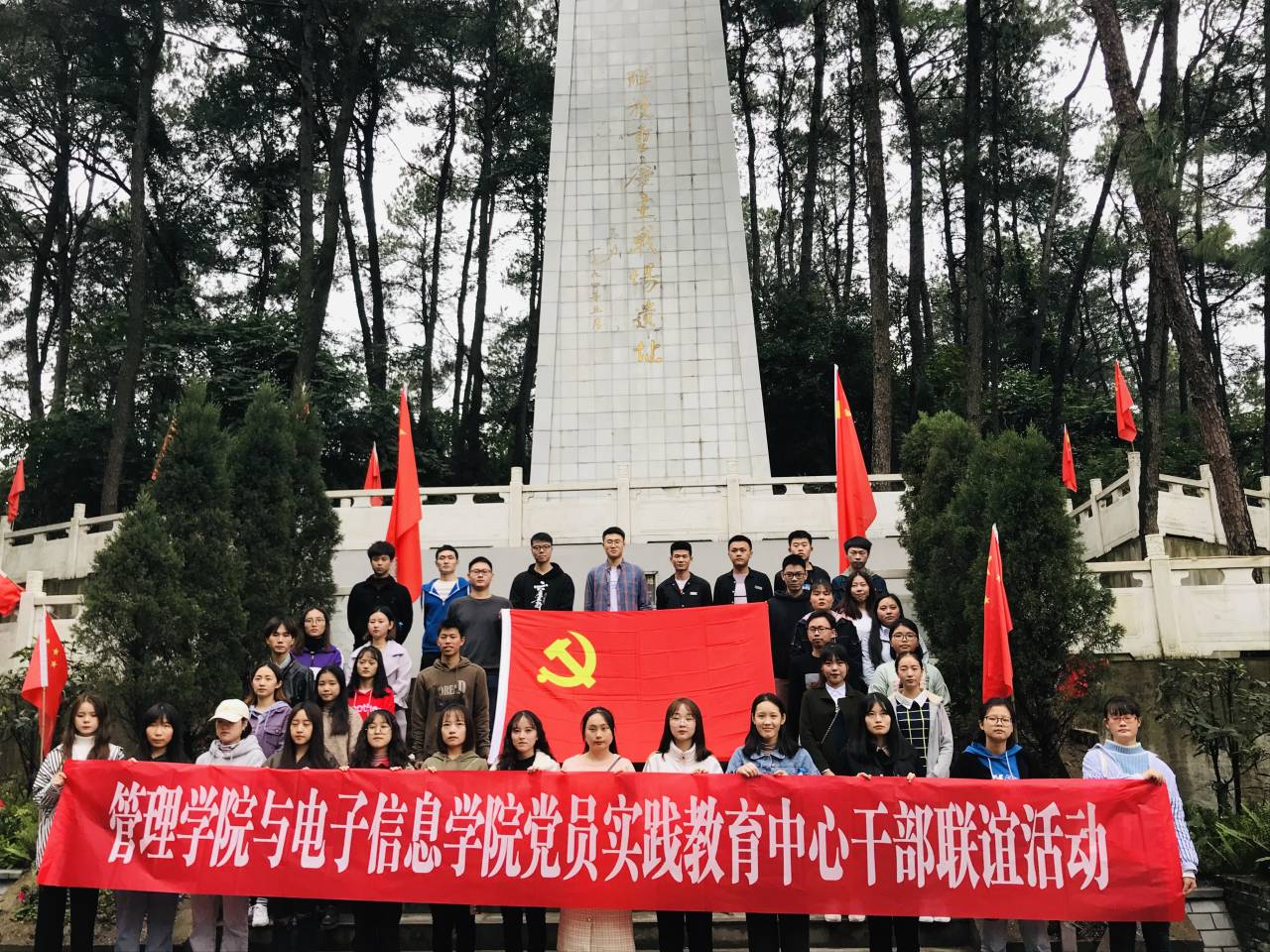 为庆祝祖国70华诞,推进校园文化建设,加强各二级学院之间的联系与交流,增强各二级学院的整体凝聚力,展现我校学生干部的青春风采与精神风貌,推进校园精神文明建设,特此于2019年11月13日14:30在重庆市巴南区南泉镇建文峰开展电子信息学院与管理学院学生党员实践教育中心干部联谊活动,电子信息学院和管理学院学生党员实践教育中心全体干部参与。
