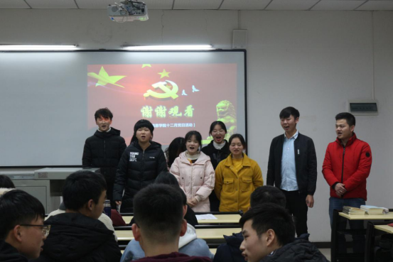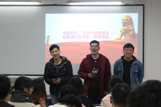 为庆祝祖国70周年华诞,纪念中国共产党成立98周年,抒发全院同志热爱党、热爱祖国的质朴情感,进一步提高广大党员的党性修养,展现我校学生干部的青春风采与精神风貌。电子信息学院学生党支部于2019年12月11日17:00在六教106教室开展“感党恩,跟党走”主题党日活动。此次活动以唱红歌为主,由吕宗玉和杨鑫同志主持,电子信息学院在校学生党员、预备党员、发展对象以及部分入党积极分子参与其中。