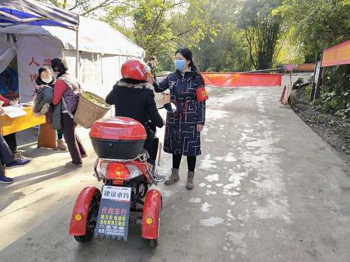 在新冠肺炎疫情防控的关键时期,作为一名中共预备党员,电子信息学院2017级电子信息工程1班的卿桂玲同志积极响应号召,成为了重庆市巴南区二圣镇巴山村的一名志愿者,用实际行动发挥党员模范先锋作用,为打赢疫情防控阻击战贡献着自己的力量。宣传防疫知识、为村民采购生活物资送货到家、严格排查进出车辆和人员、入户排查留观人员动态,这是卿桂玲同志每天的工作。面对繁重的工作,她只是说:“表示尽管不能奔赴前线,尽管自己做的很有限,但都是值得的。相信国家,相信党,等春暖花开的那一天,大家一同回重工欣赏花溪河畔的樱花!”