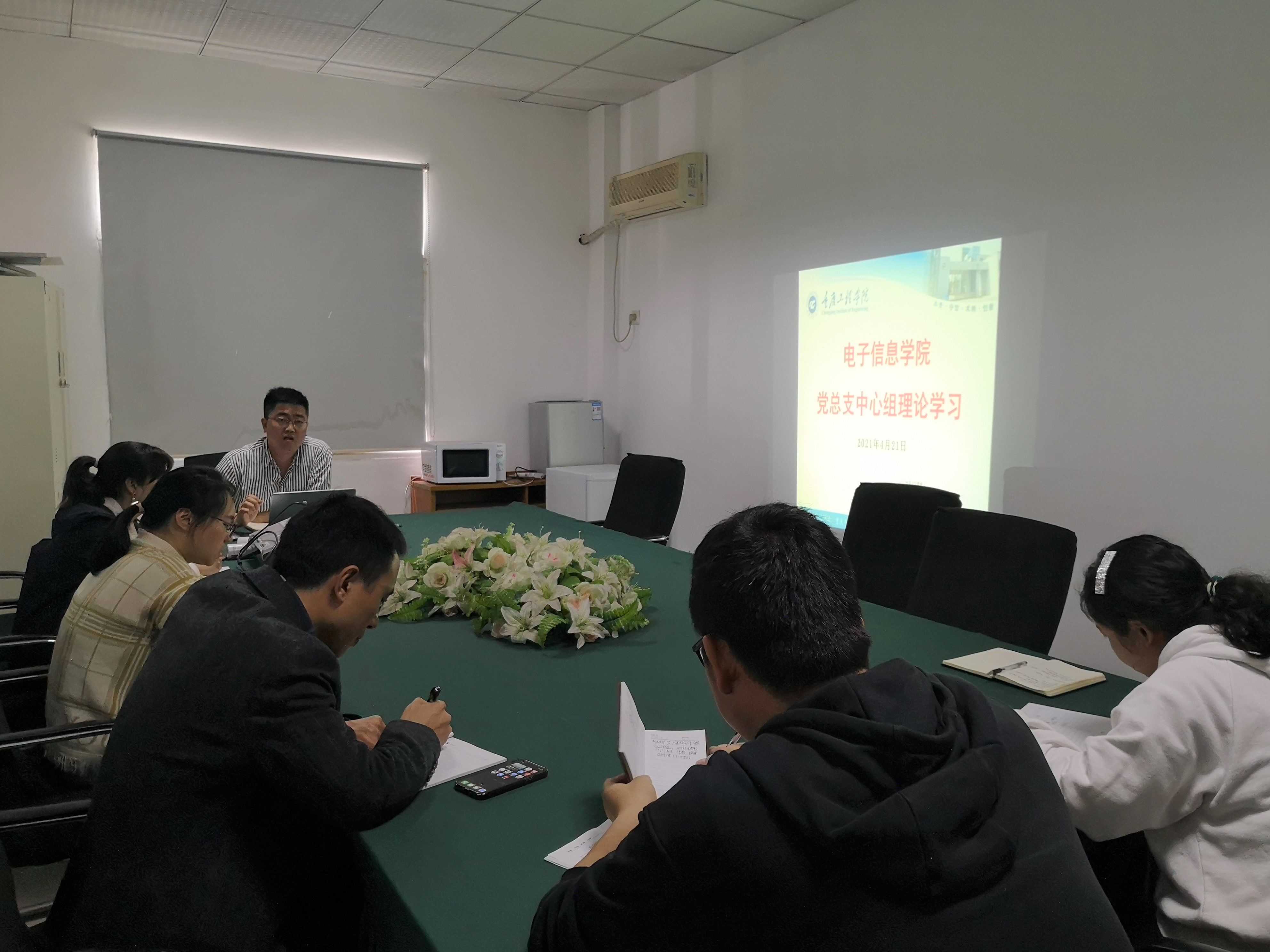 为学习贯彻落实习近平总书记在福建考察期间重要讲话精神,2021年4月21日,电子信息学院党总支在办公楼201会议室开展政治理论学习,会议由党总支书记谭思宇同志主持。