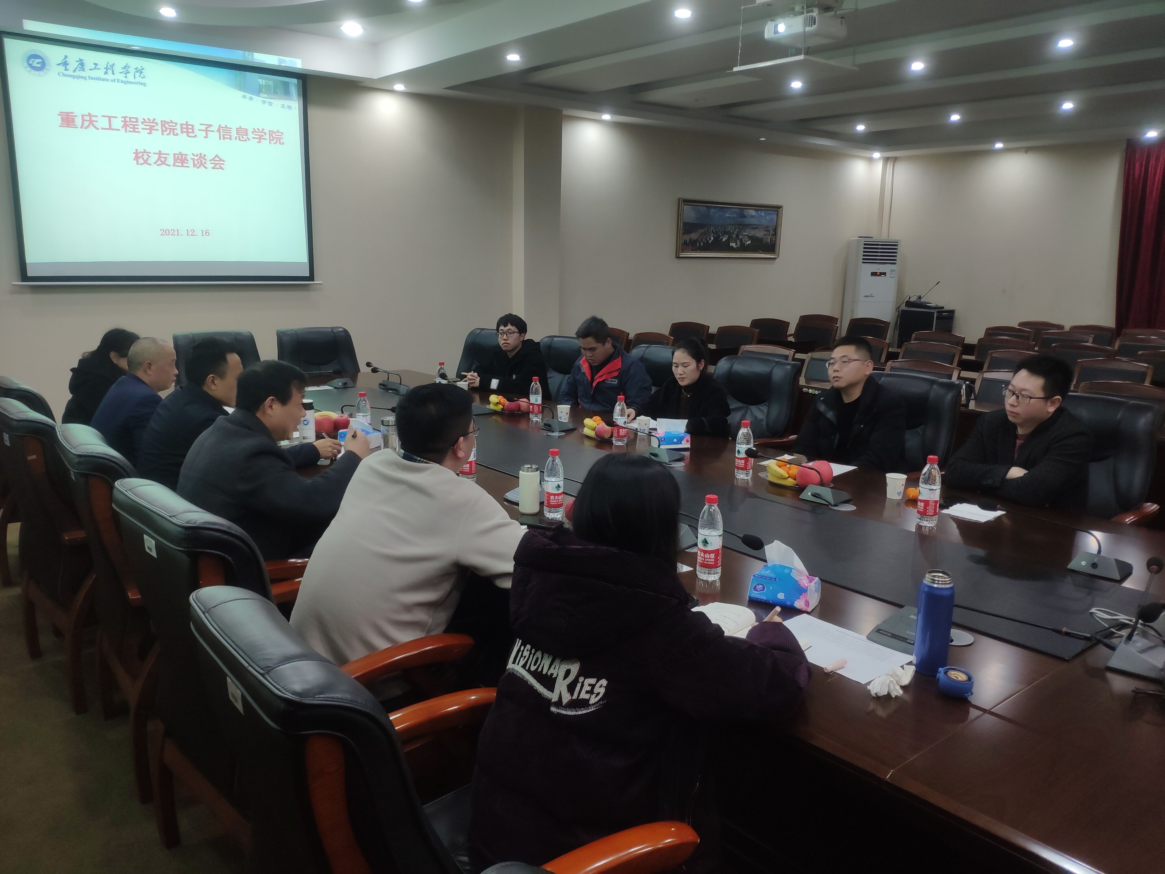 2021年12月16日下午,电子信息学院组织召开校友座谈会,邀请往届校友回校交流。院长何世彪、书记谭思宇、副院长景兴红、通信系主任许癸驹、就业科副科长卢瑛和电子信息教研室副主任武丽莉参与座谈,此次回校的校友包括2009届的王兵、吴平、向优珍,2020届的陈肖、蒋利威等,他们都在各自领域做出了突出成绩。校友们分别介绍了自身的成长经历及工作情况,为学校的教育教学提出了许多宝贵意见,何院长感谢校友们百忙之中回校交流,希望双方在实践教学、素质教育、项目合作等方面加强联系,整合校友资源发挥校友优势。