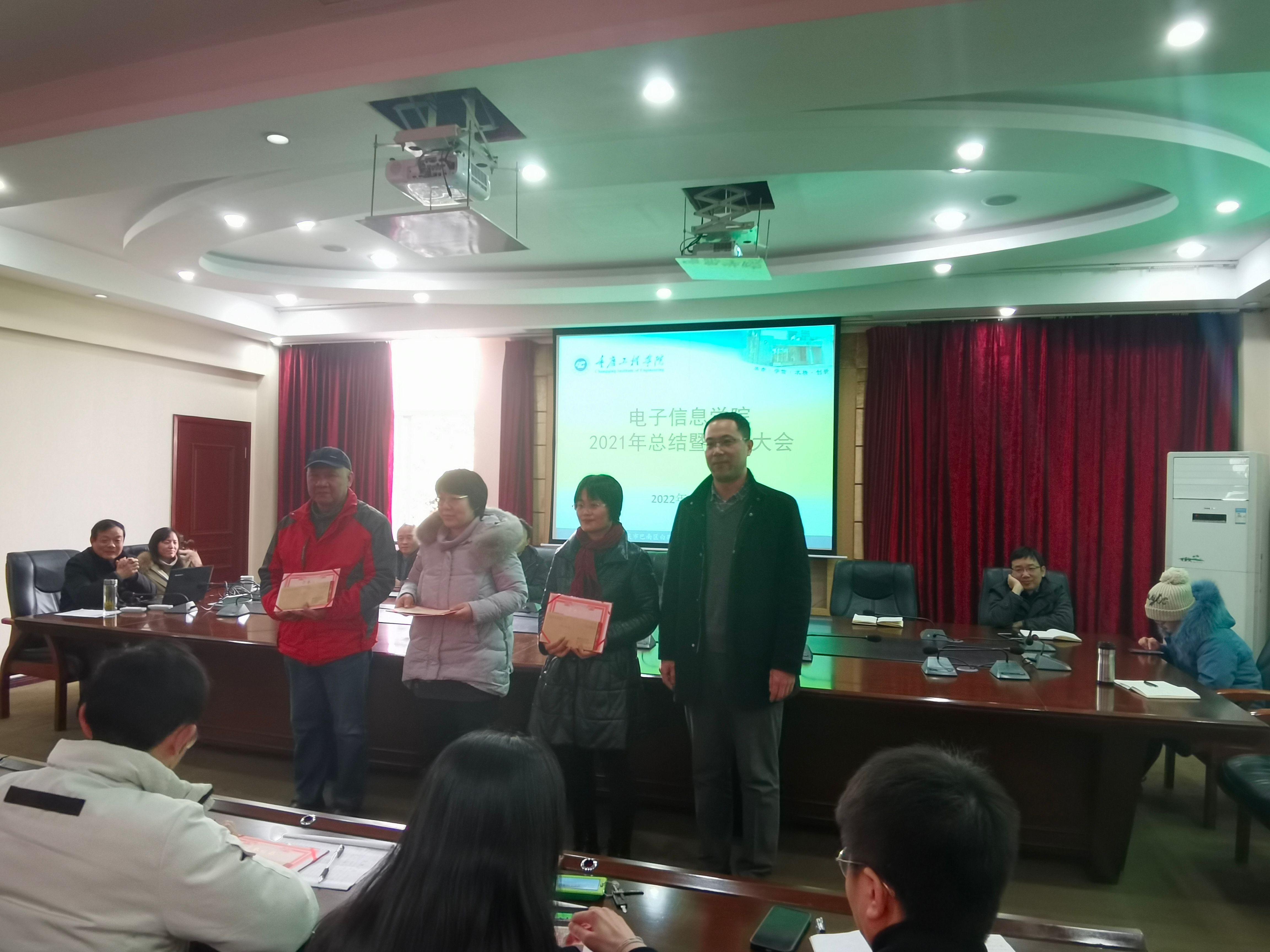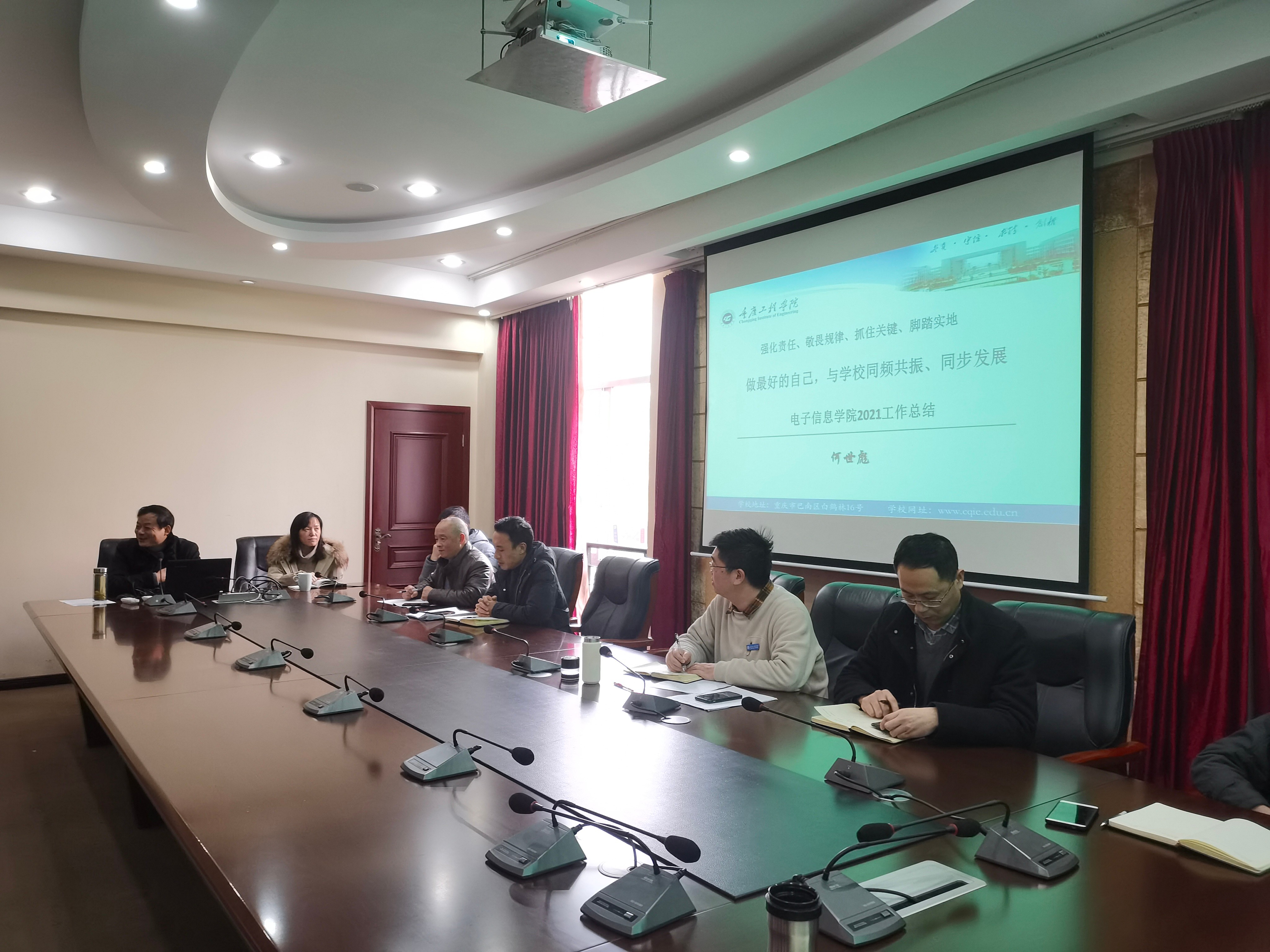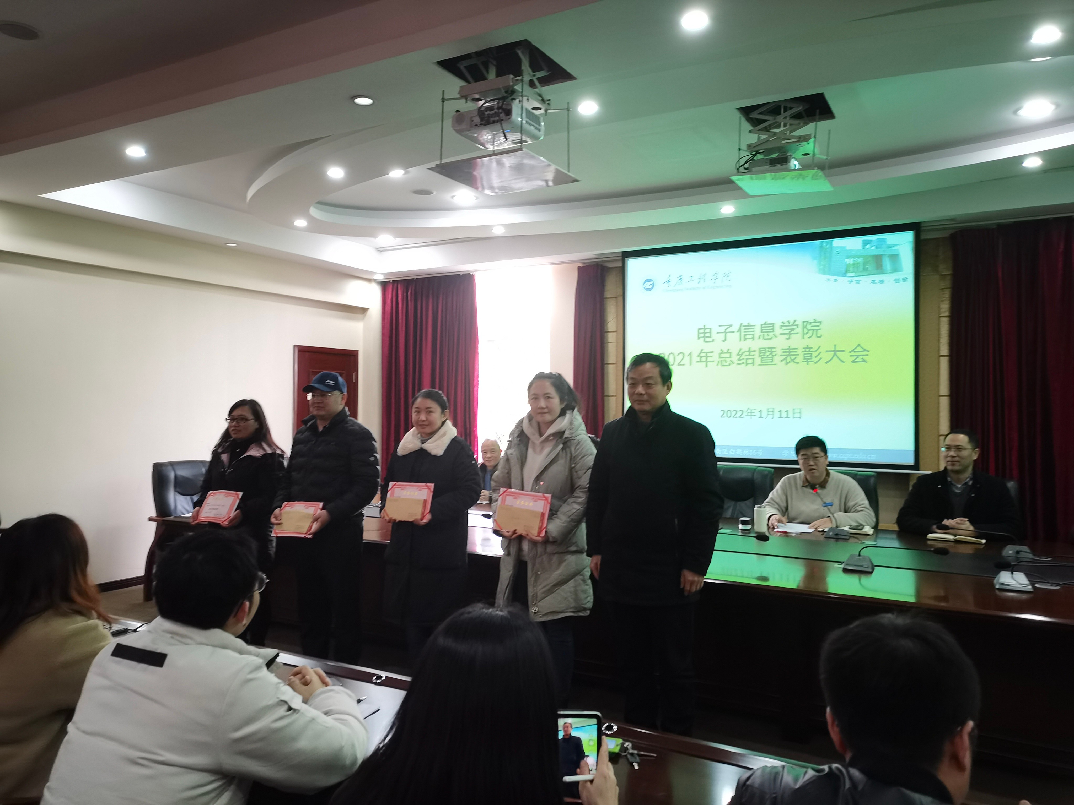 1月11日,电子信息学院在第七会议室召开2021年总结暨表彰大会,会议由学院党总支书记谭思宇主持,全体院领导、全体教职工共计56人参加。