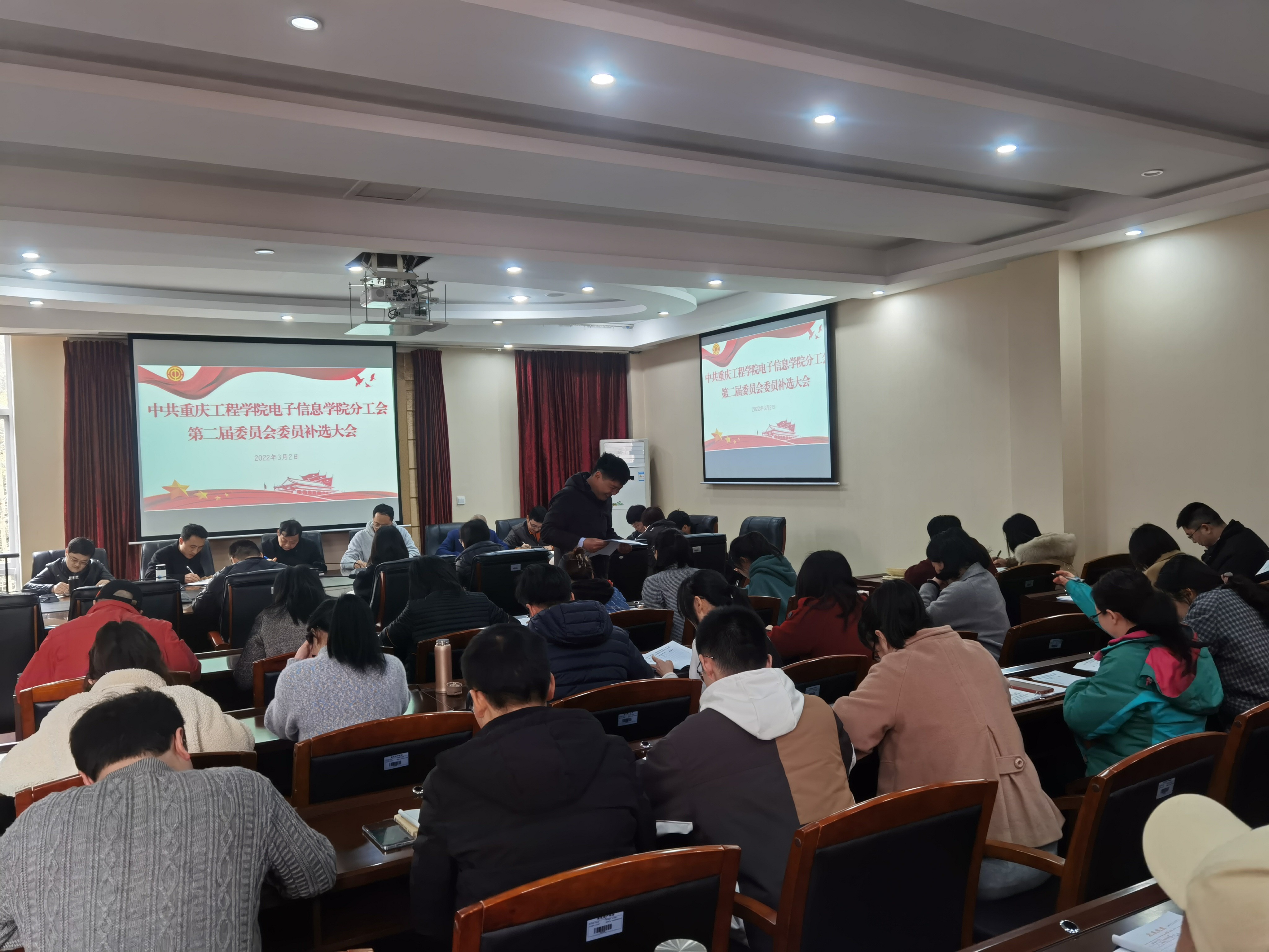 按照《重庆工程学院关于第二届教职工代表大会暨工会会员代表大会代表、分工会委员会委员(主席)补选的通知》,大会一致通过了《重庆工程学院分工会委员会委员补选及第二届教职工代表大会、工会会员代表大会代表补选办法(草案)》及监票人和计票人名单,并进行了投票选举。大会采取无记名投票方式,差额选举增补了谭思宇、魏登雪为电子信息学院教代会暨工代会代表,张仁永、宋志平、涂敦兰、钱雅楠、魏登雪当选为新一届分工会委员会委员;经新一届分工会委员会第一次会议,等额选举确定魏登雪任主席。
