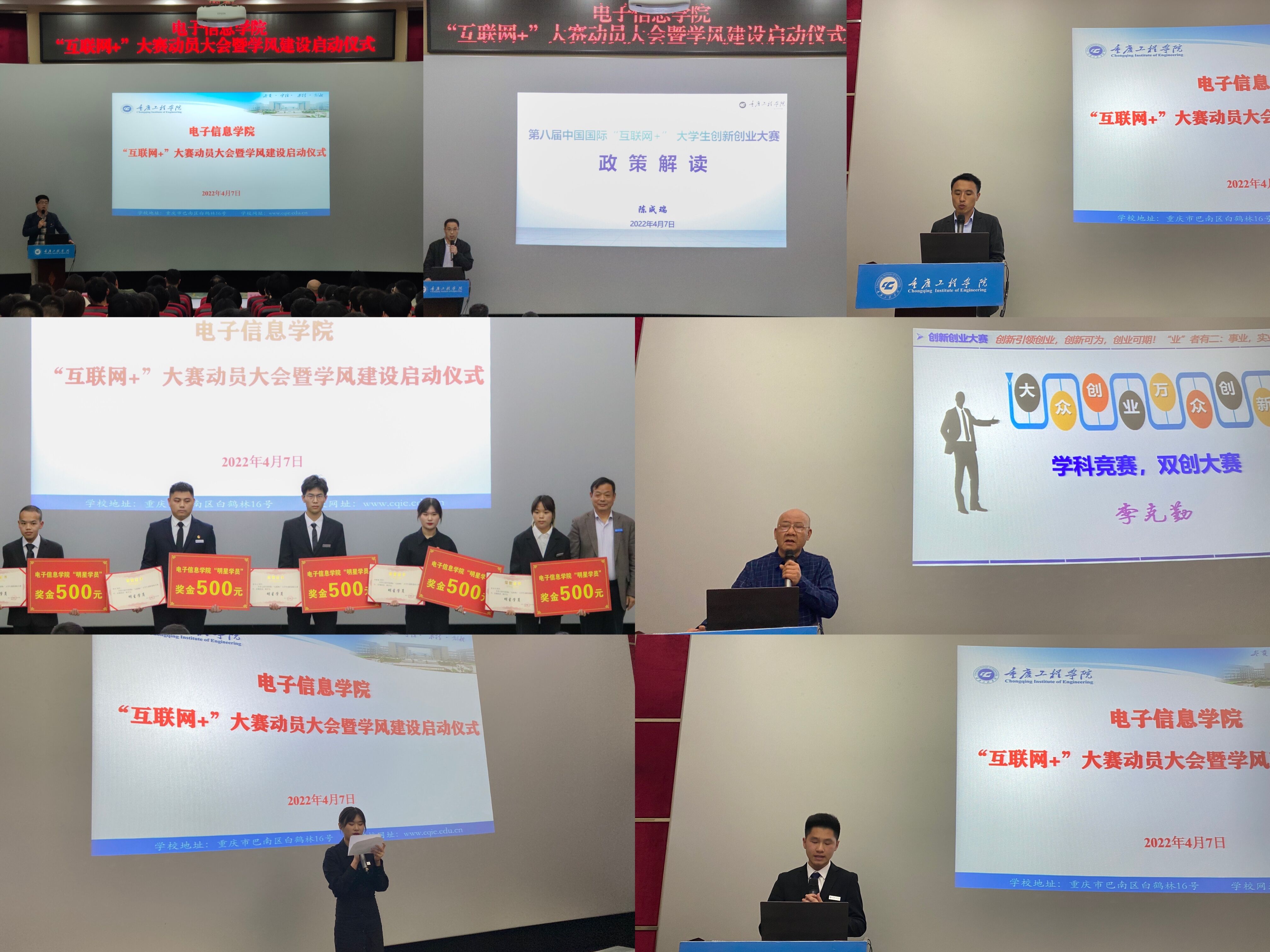 会上,陈成瑞副院长详细解读了《第八届中国国际“互联网+”大学生创新创业大赛方案》,景兴红副院长宣读了《电子信息学院关于表彰中国国际“互联网+”大学生创新创业大赛“明星学员”的决定》,重庆高校十大双创明星李克勤老师作了动员宣讲。同时,为了激励更多同学参加“互联网+”大赛,学院对上一届参赛表现优异的同学进行了表彰颁奖,“明星学员”代表19电信3班谭珊珊同学现场分享了参加“互联网+”大赛的收获与体会。