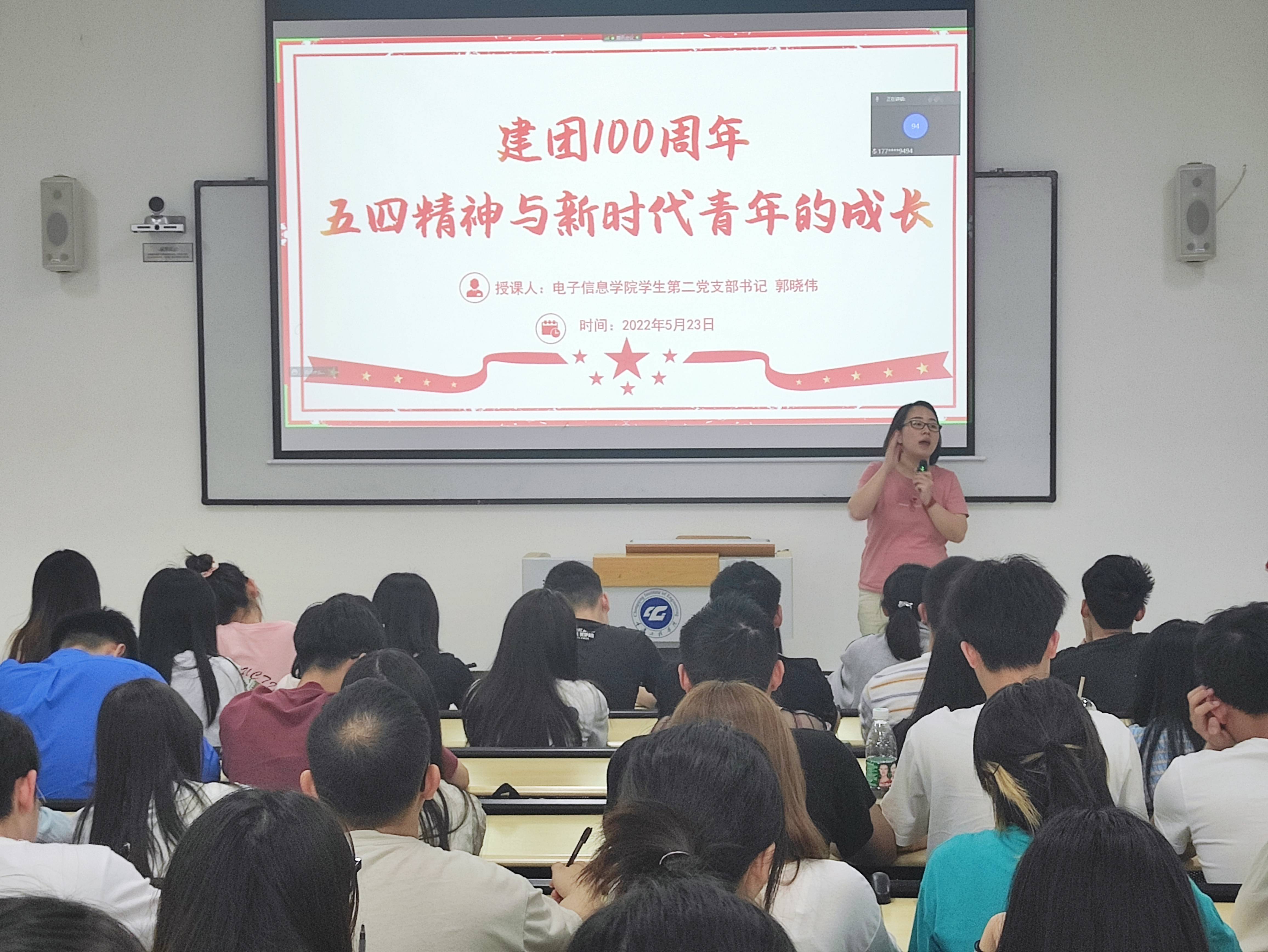 为进一步增强预备党员、入党积极分子对中国共产党精神内涵的了解, 5月23日,电子信息学院学生第一党支部、第二党支部联合开展“五四精神与新时代青年的成长”专题党课,第二党支部书记郭晓伟同志主讲,全体预备党员、入党积极分子共计414人参加培训。