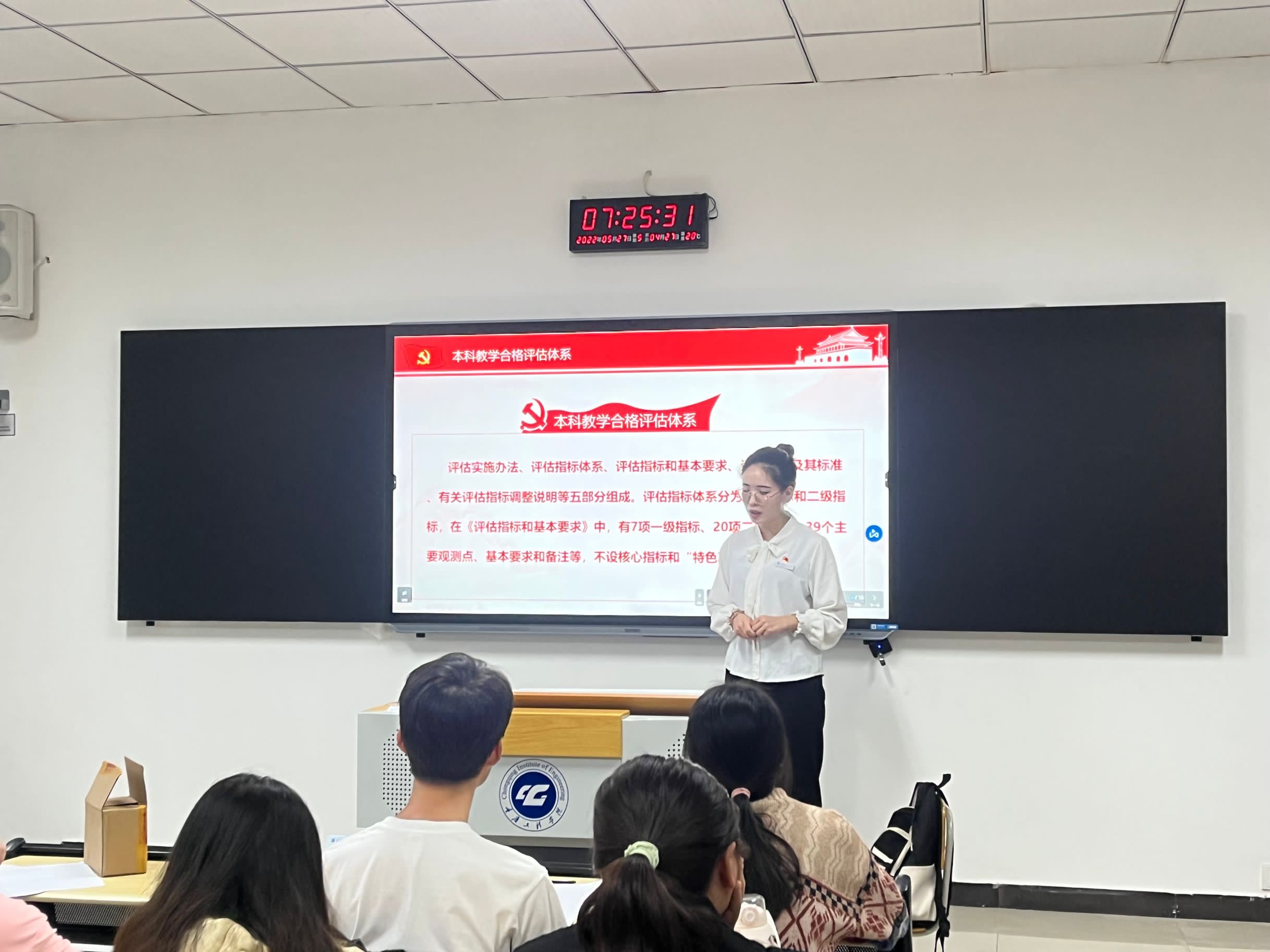 学院刘静旖、余凤蝶、周倩等11位预备党员作为主讲人根据自身情况,结合自身经历,以党史学习教育、本科合格评估知识、学科专业知识竞赛、学习专业基础知识作为宣讲内容,进入不同的班级来进行宣讲。