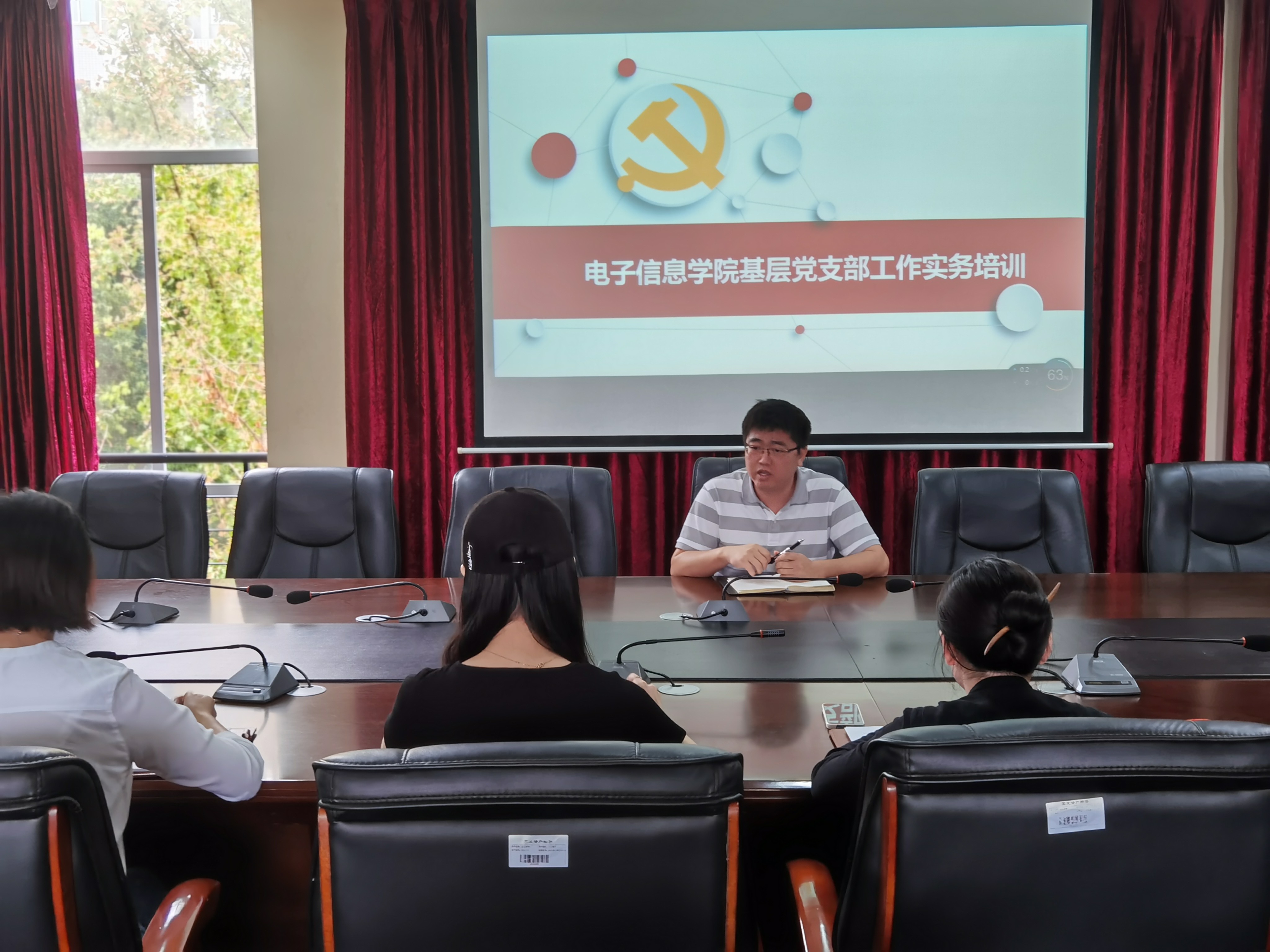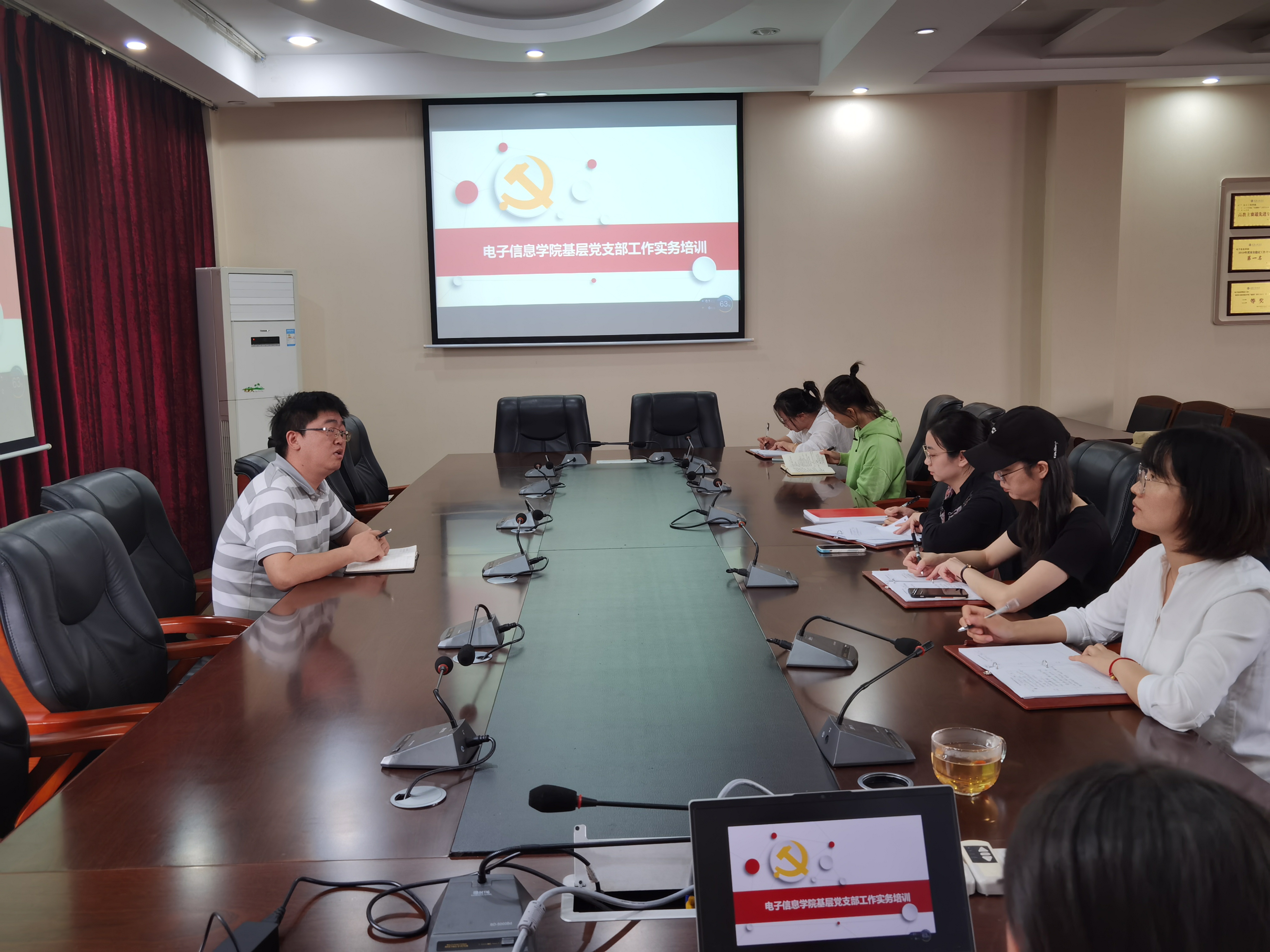 9月22日,电子信息学院党总支在第七会议室召开党务干部业务能力培训会,会议由党总支书记谭思宇同志主持,学生第一党支部、学生第二党支部全体委员共计7人参加。