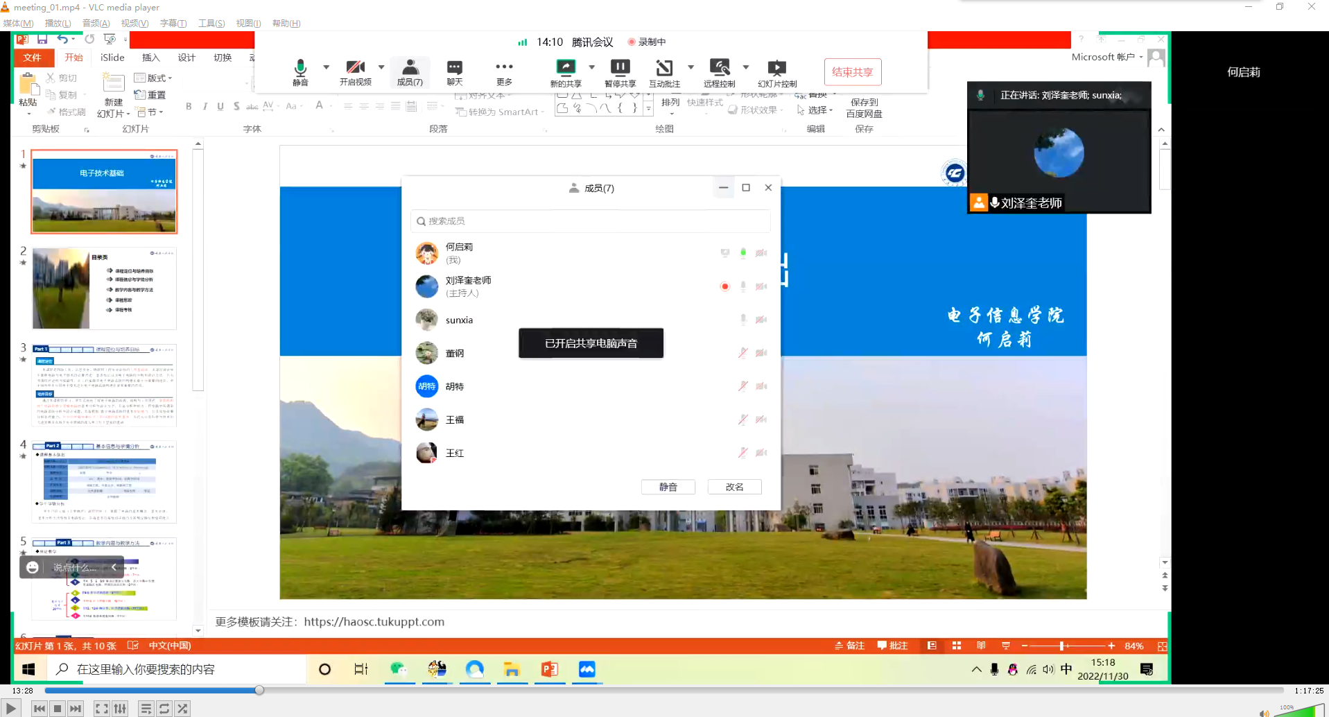 为了有效提高老师的教学能力和对课程内容的整体理解和把控,丰富教学手段和教学方法的应用,通信原理和移动通信课程组于2022年11月30日经腾讯会议开展说课活动。