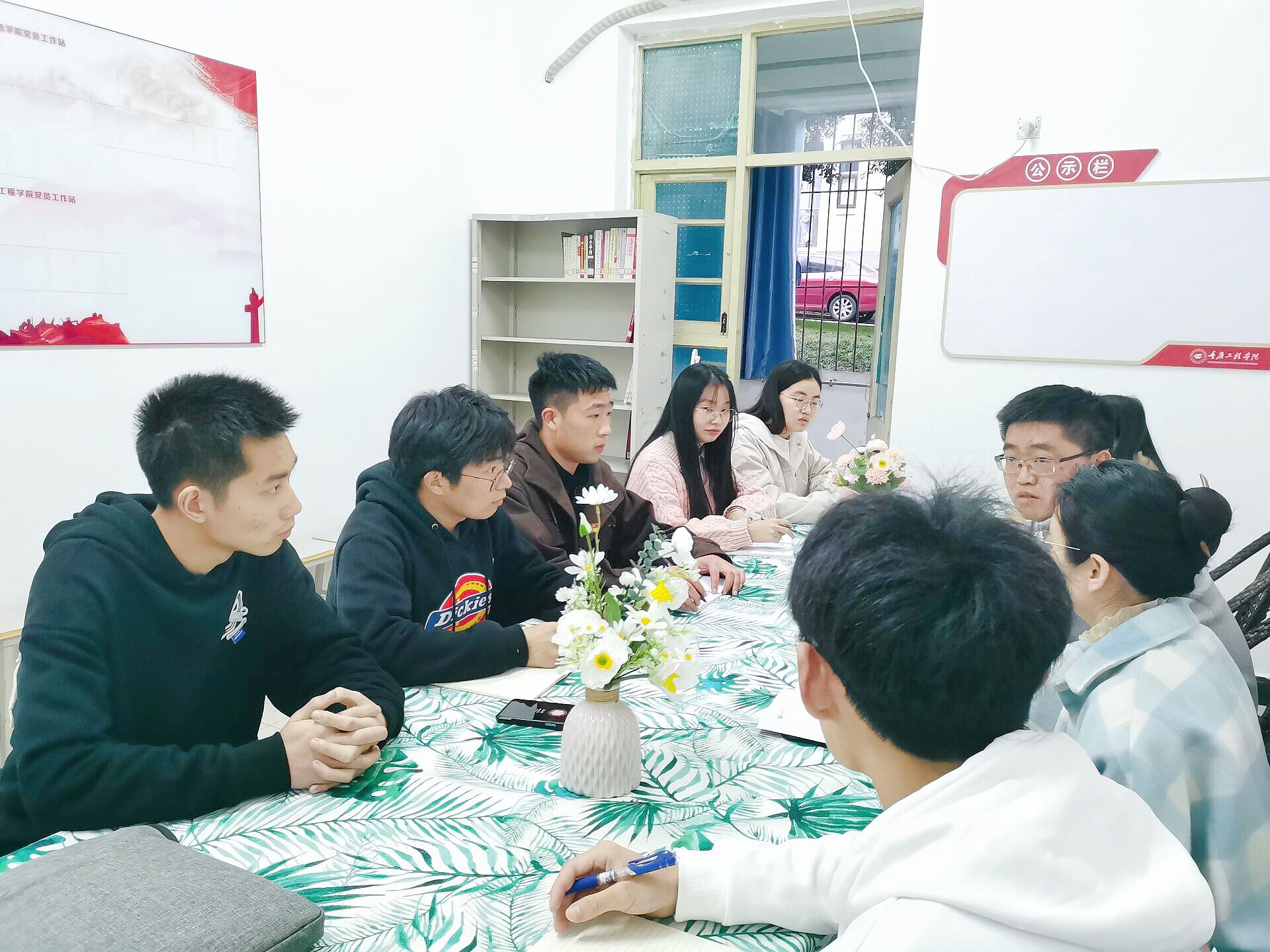 2023年3月28日,为充分发挥学生党员在学生公寓的先锋模范作用,健全学生公寓党员工作站管理机制,由电子信息学院党总支书记谭思宇与电子信息学院学生第一党支部党员、预备党员展开了一次线下面对面座谈会。