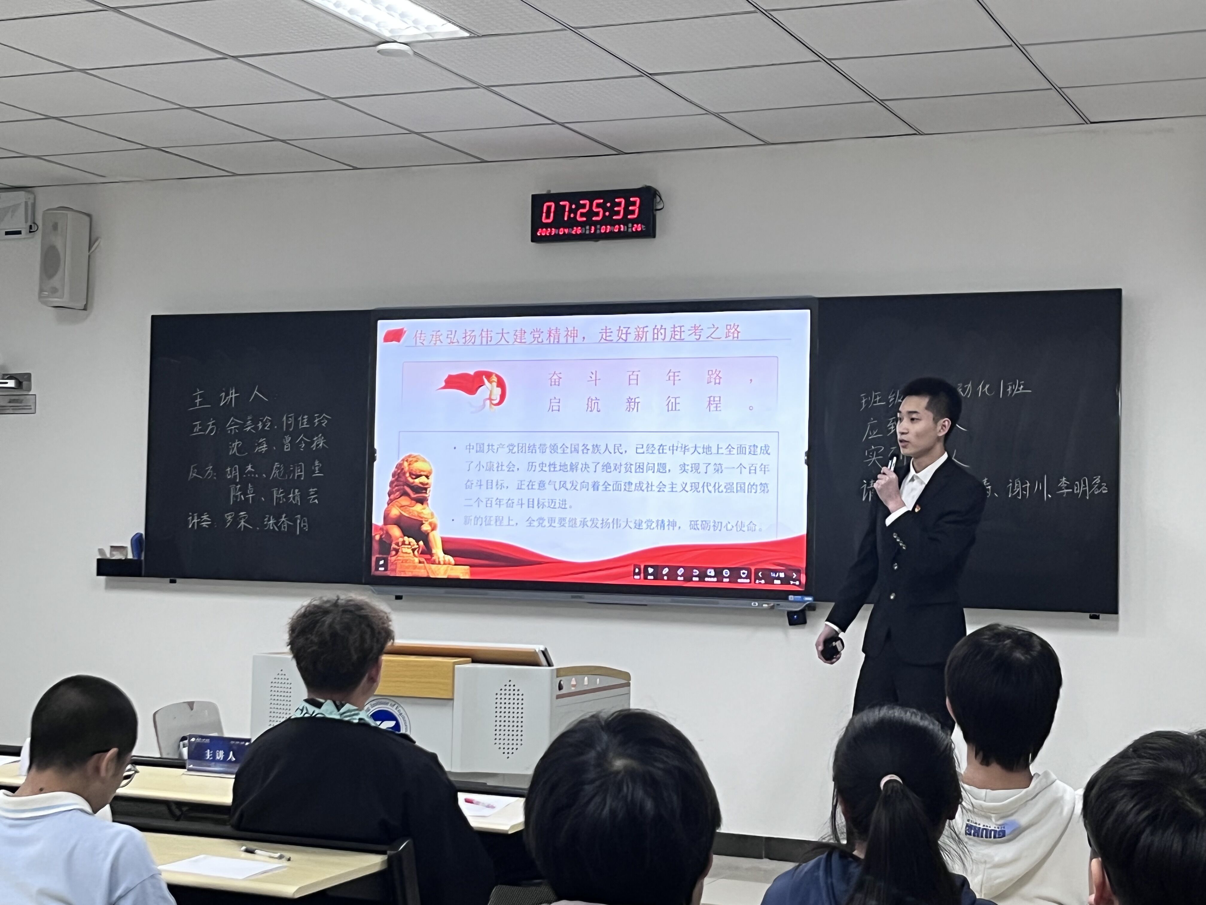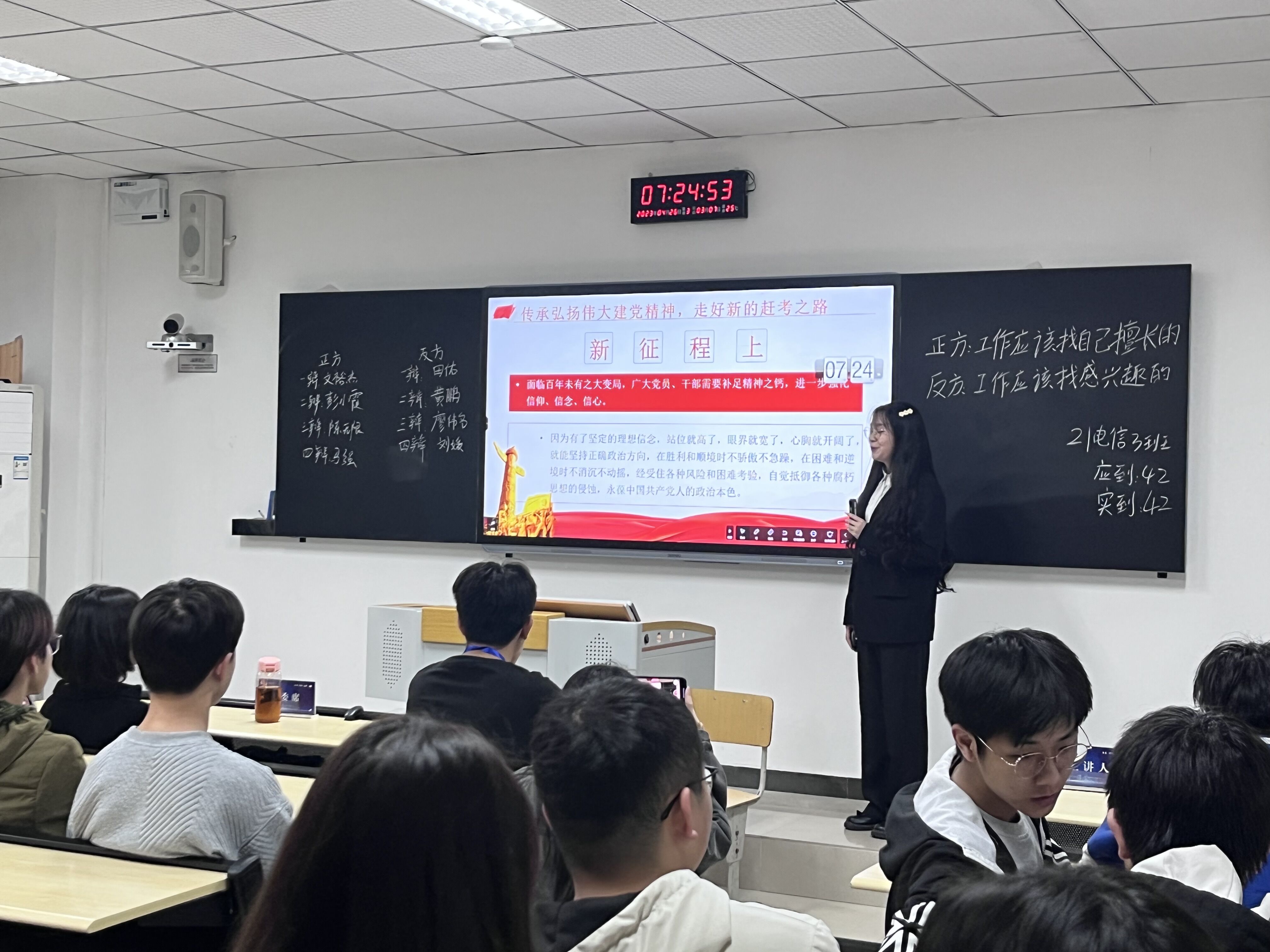 此次活动采取集体备课和一对一宣讲的方式,1个党员深入1个班级,对伟大建党精神之坚持真理、坚守理想作专题分享。课堂上,12位宣讲团成员以悟原理为核心,在自身深刻领会伟大建党精神的基础上,用朴实的语言阐述伟大建党精神的深刻内涵,从中国共产党的先驱者角度,坚定“坚持真理 坚守理想”是伟大建党精神的灵魂,并立足当前百年未有之大变局,总结需要传承弘扬伟大建党精神,走好新的赶考之路。