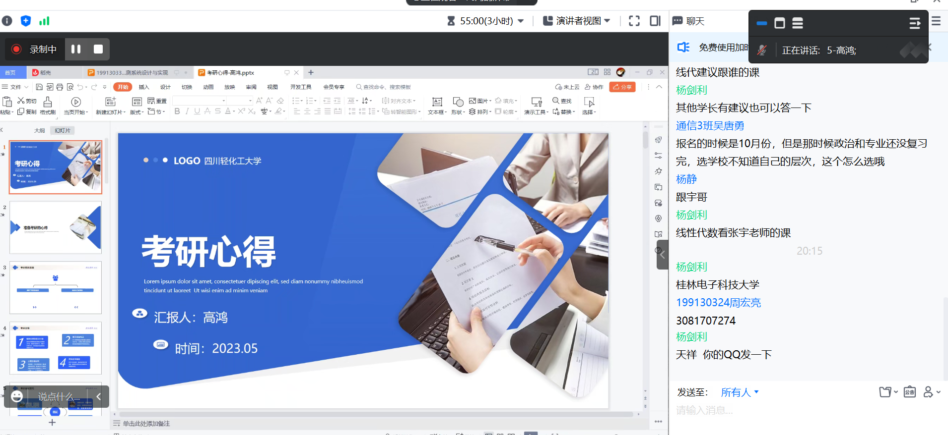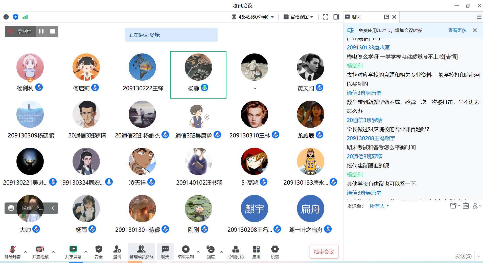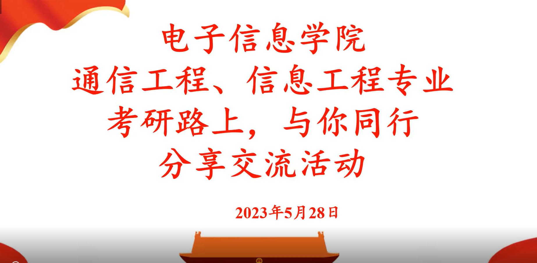 为进一步帮助通信工程、信息工程专业有考研意向的学生明确考研目标,掌握相关考研技巧,了解更多考研信息,提供更加全面的指导和帮助,5月28日通信工程系开展线上(腾讯会议)“考研路上,与你同行”分享交流活动。活动由杨剑利老师主持,何启莉老师进行总结,特邀了五位优秀的学长(杨静、周宏亮、凌天祥、高鸿、龙威辰)为同学们答疑解惑并分享考研经历与经验。