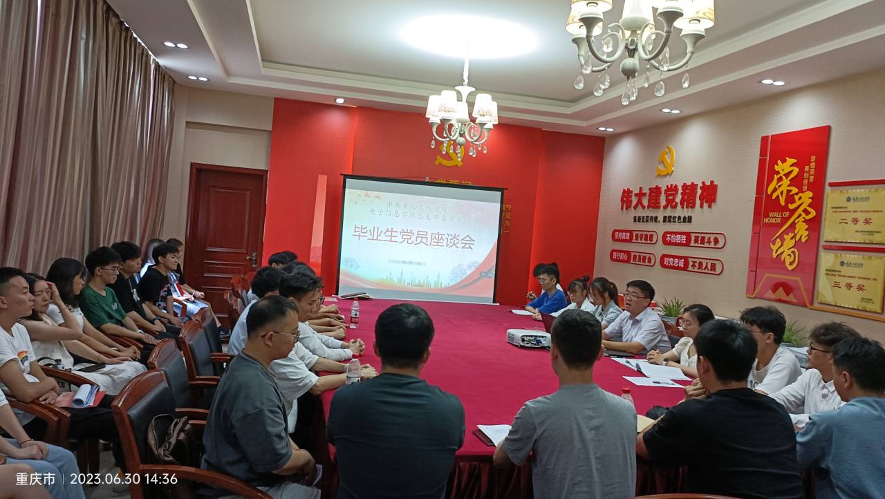 为了引导学院毕业生党员做一名合格的中国共产党党员,2023年6月30日,电子信息学院党总支在党员活动室召开毕业生党员座谈会暨最后一堂党课。学院党总支书记谭思宇出席活动并讲话。2023届毕业生党员参加会议,共计40余人。