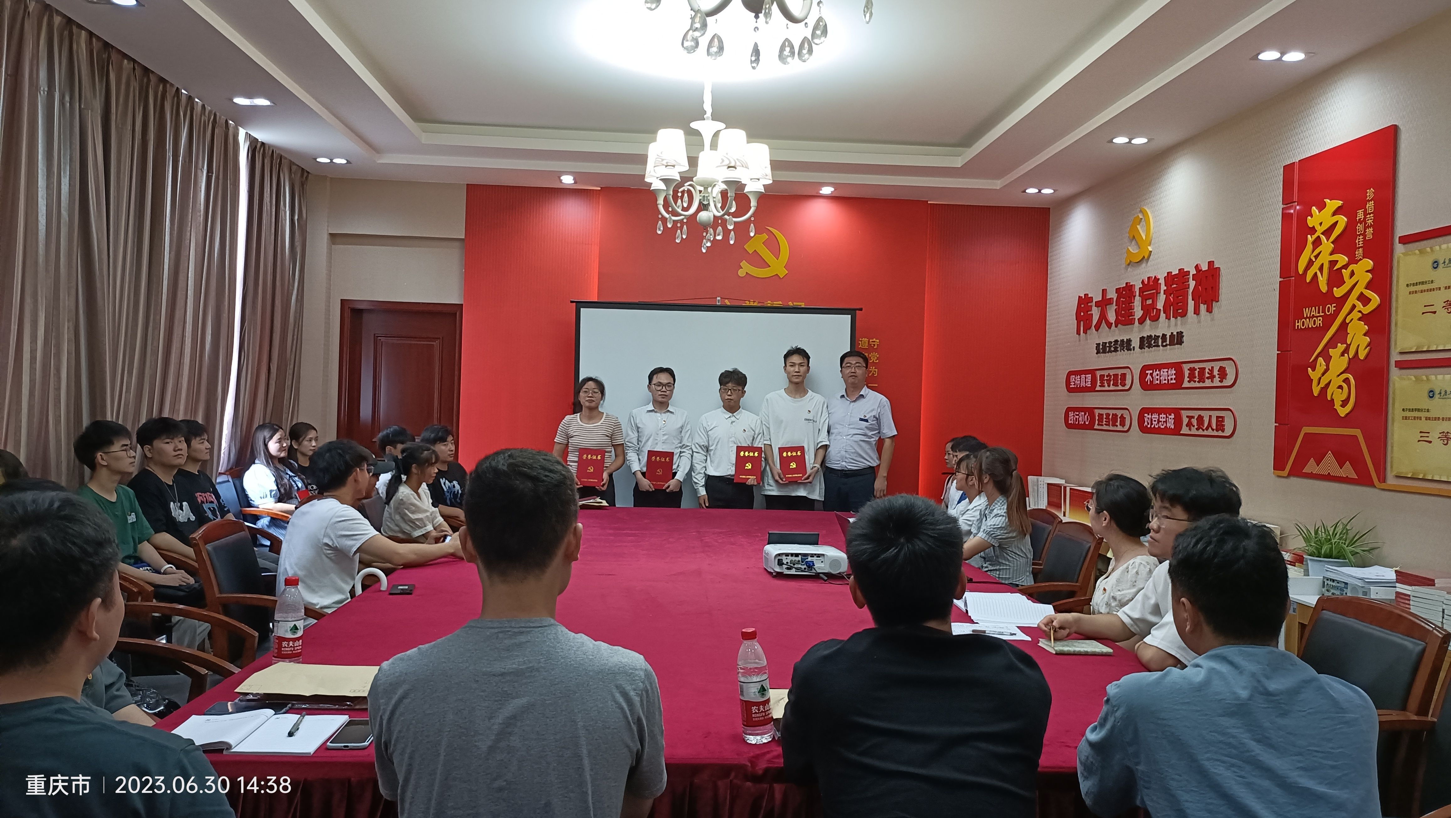 学院党总支书记谭思宇同志,首先表达了对优秀毕业生党员们的美好祝愿,同时也对党员们在校期间为我系各项工作做出的积极贡献表示了肯定。紧接着为即将毕业离校的学生党员讲了最后一堂党课,希望他们站好最后一班岗,更加严格要求自己,提高自身的党性觉悟和政治修养。在颁奖环节,谭书记为2023年度优秀共产党员刘子涵、黄啓洋、黄裕满、冉龙行颁发荣誉证书。由谭书记、向书记、肖书记为各位同志分发学院党总支准备的政治礼物《红色家书》。活动最后,全体优秀毕业生党员到楼下进行合影留念。