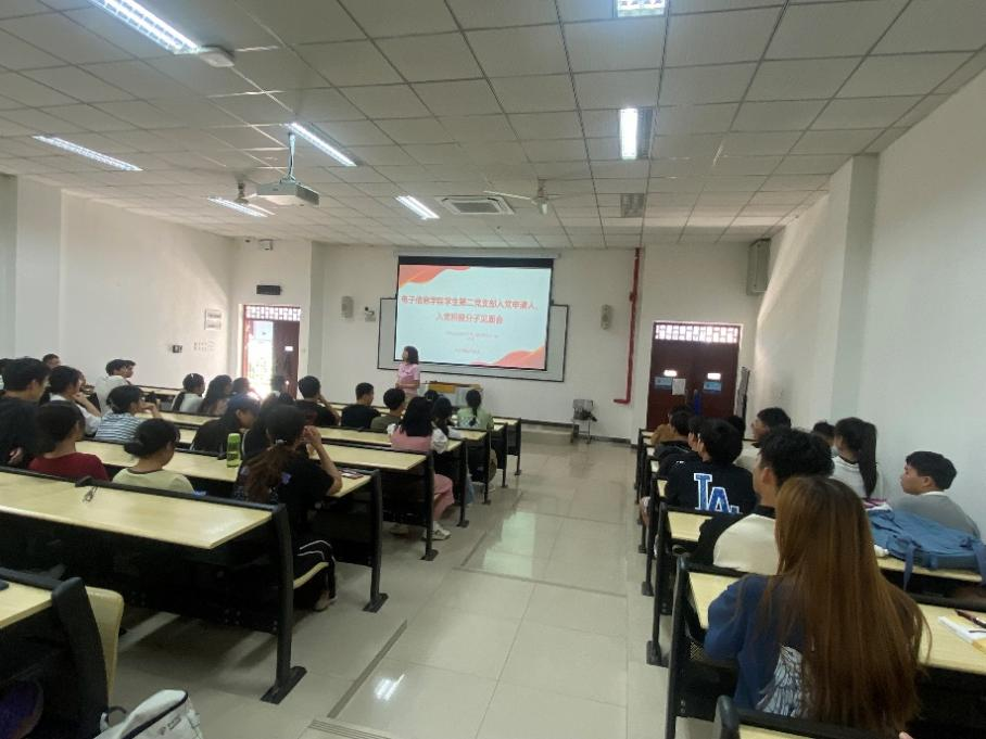 为了规范发展党员工作,保证新发展的党员质量,9月15日,电子信息学院学生第二党支部在六教202召开入党申请人、入党积极分子见面会,21级、22级全体入党申请人以及入党积极分子参加会议,会议由电子信息学院学生第二党支部支部书记肖璐主持。