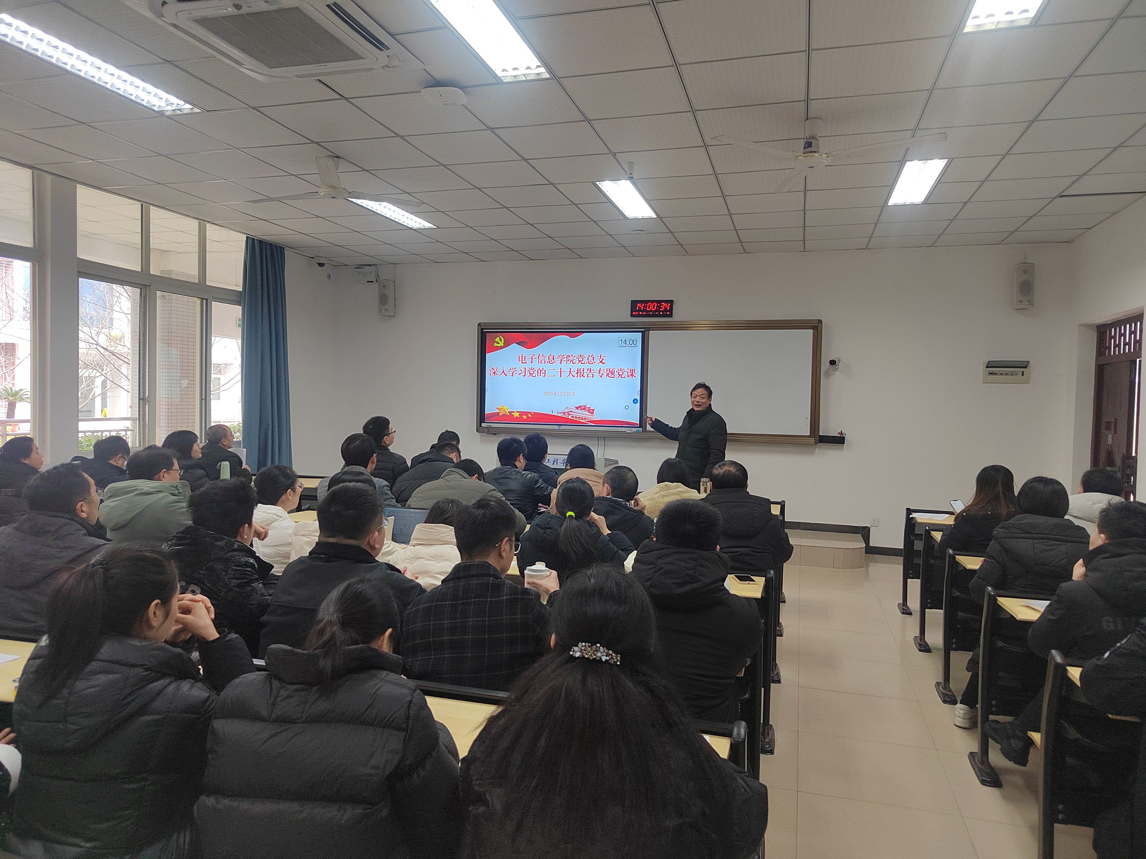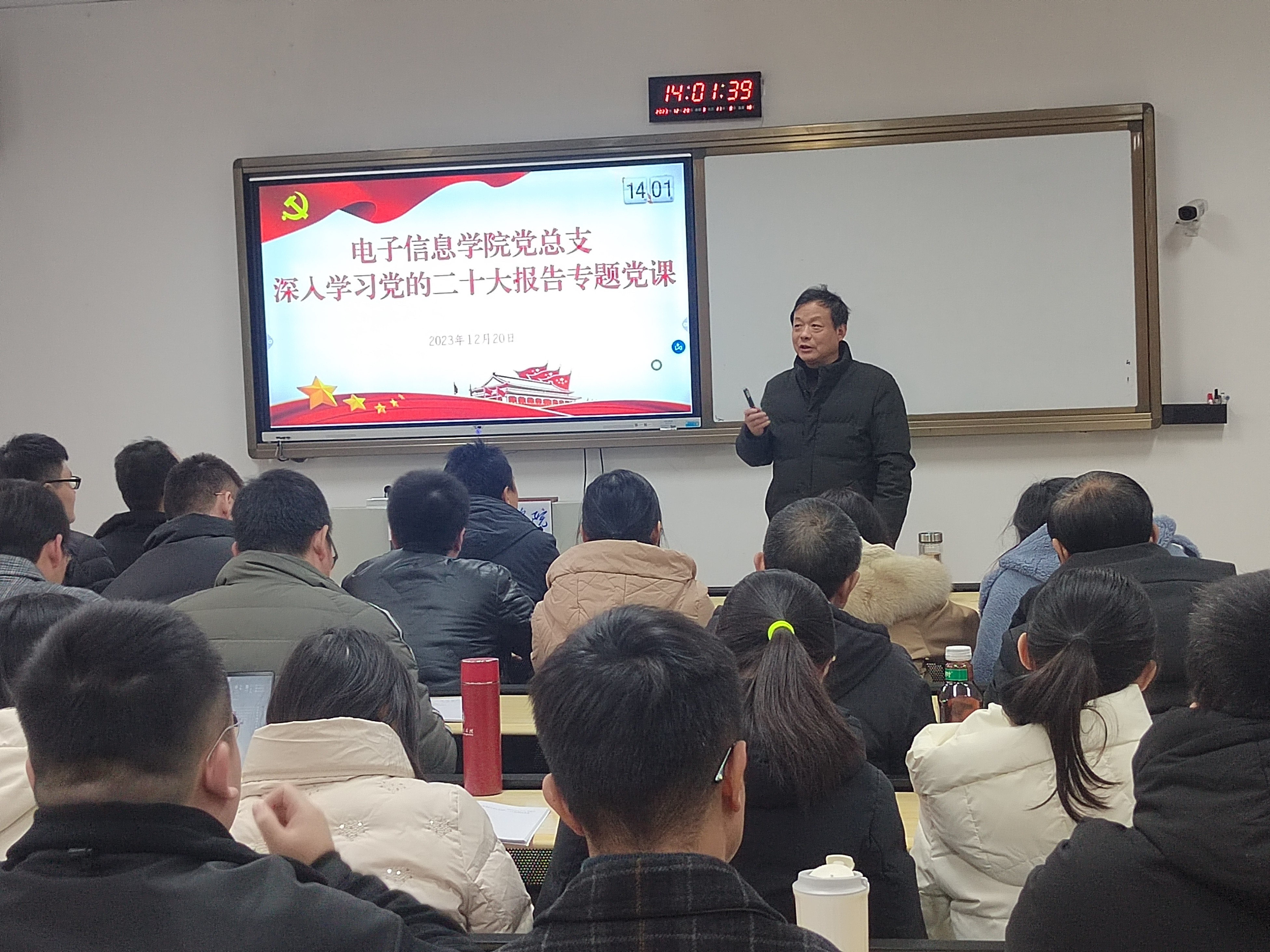 12月20日,为深入学习贯彻党的二十大报告精神,电子信息学院党总支组织学院全体教职工开展专题党课,由学院院长何世彪同志主讲,全体教职工参加。