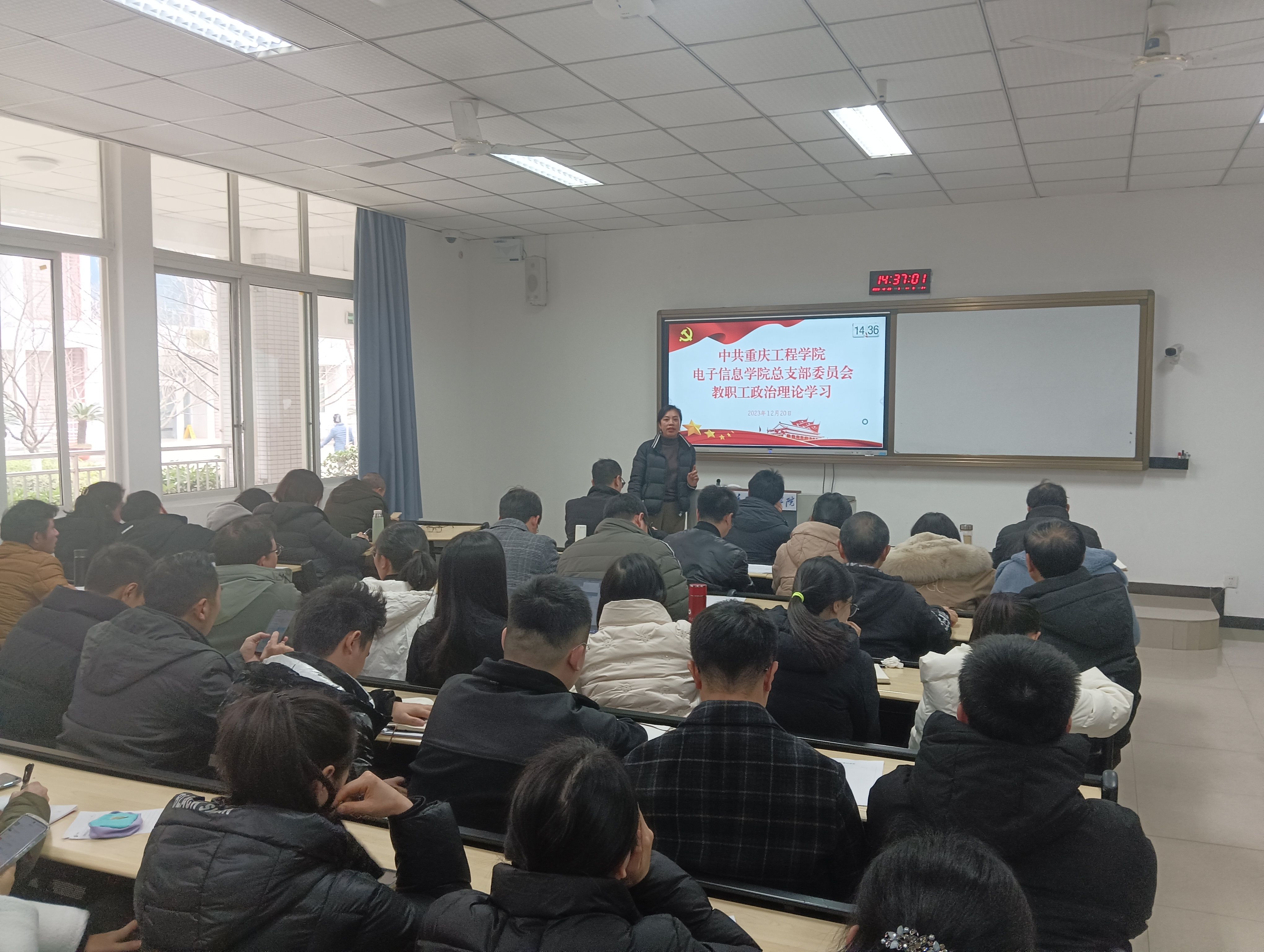 为深入学习贯彻习近平文化思想,加强党的创新理论武装,2023年12月20日,电子信息学院党总支在6102开展全体教职工政治理论学习会,本次会议共计60余人参加。