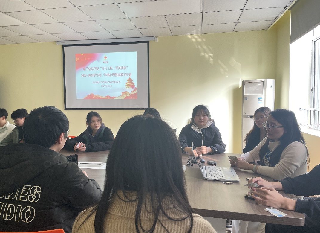 为深入贯彻落实心理健康教育,改善和优化学生的认知结构,提升学生心理健康素养,使之成为德智体美劳全面发展的社会主义建设者和接班人。电子信息学院组织部于12月13日14:00在大学生服务中心304开展“青马工程•菁英团校”心理健康教育培训。