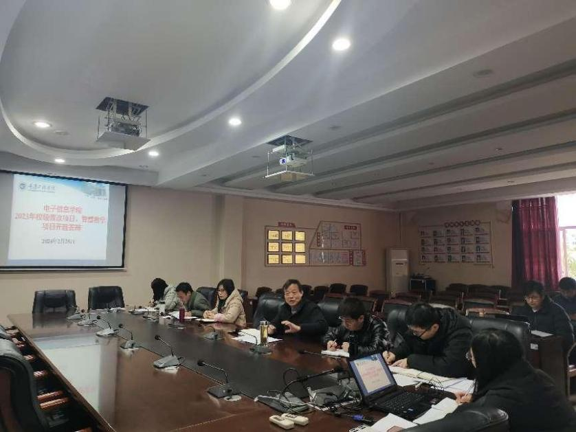 为了进一步提高2023年电子信息学院教学改革、智慧教学项目的质量,2月28日,电子信息学院在第七会议室召开2023年校级教学改革项目开题评审会。参加评审的专家有院长何世彪、景兴红等学院学术分委员会成员,会议由张仁永主持。