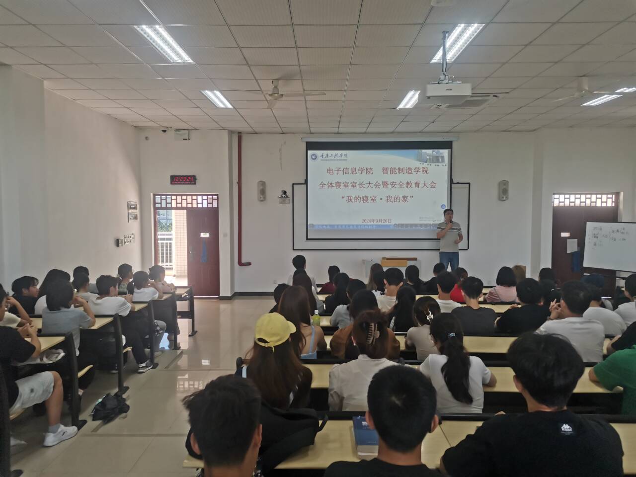 为加强寝室管理,促进寝室文明建设,营造良好的校园生活环境。9月26日12:30,电子信息学院在6201教室开展主题为“我的寝室、我的家”全体寝室长大会暨安全教育大会,学院党总支书记谭思宇、学生科、全体寝室长参与。