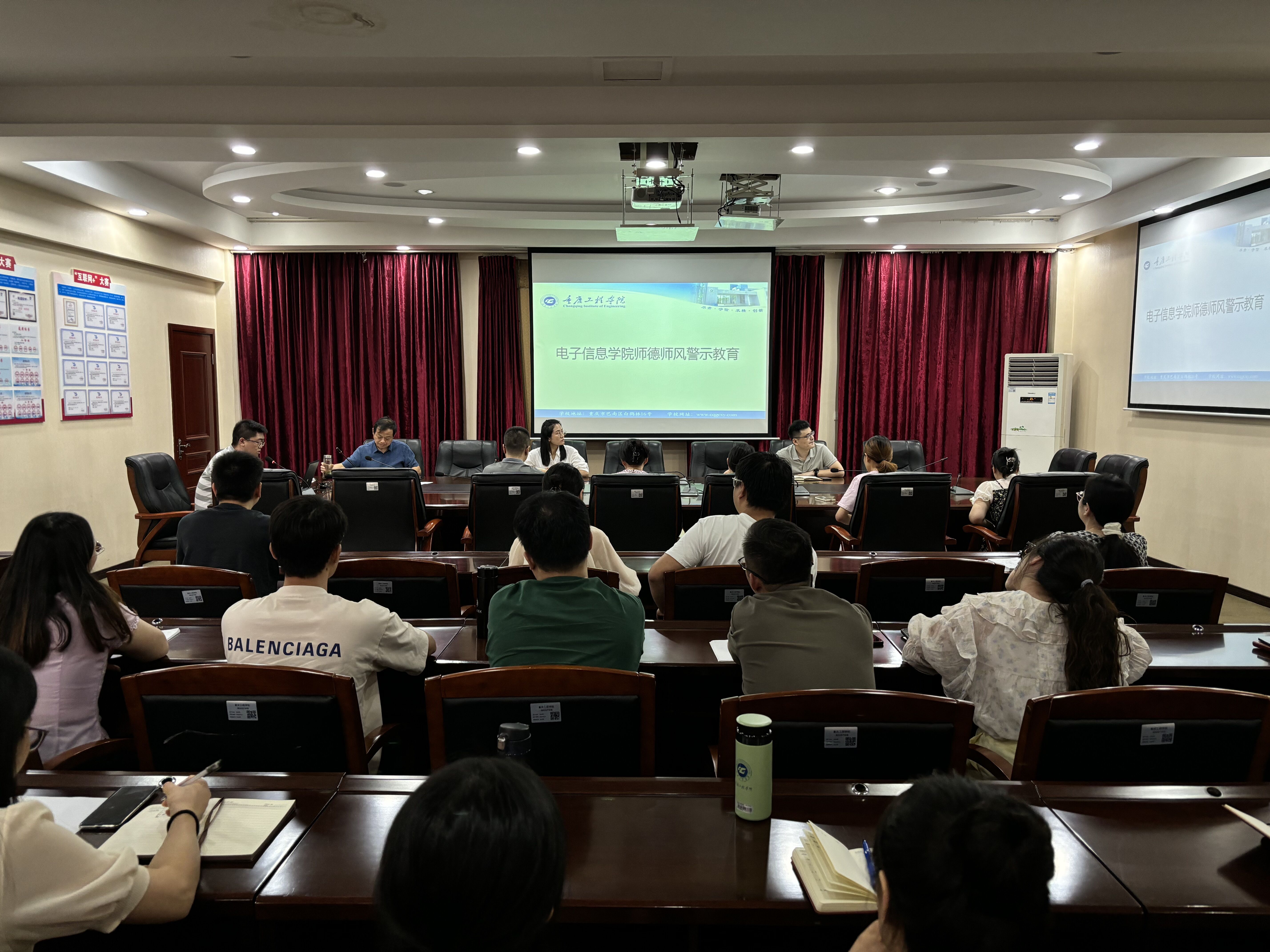 为深入贯彻落实习近平总书记关于教育工作的重要论述,全面加强新时代教师队伍建设,大力弘扬教育家精神,引导广大教师践行师德规范。9月25日下午,电子信息学院召开2024-2025学年第一学期师德师风警示教育大会,学院全体院领导、教职工参加,会议由党总支书记谭思宇主持。