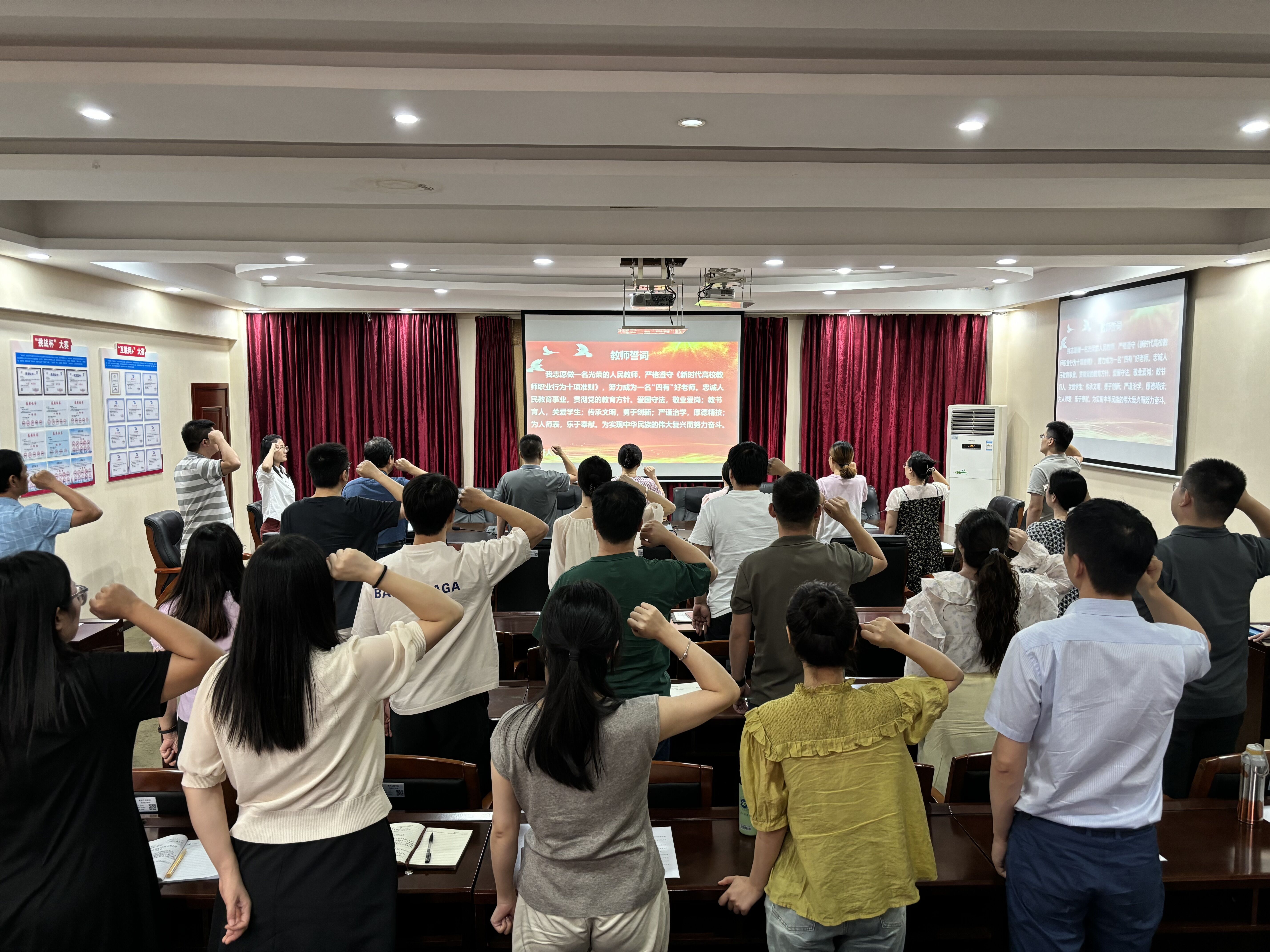 随后,院长助理钱雅楠带领全体教师进行了宣誓并签订了《重庆工程学院师德师风承诺书》。
