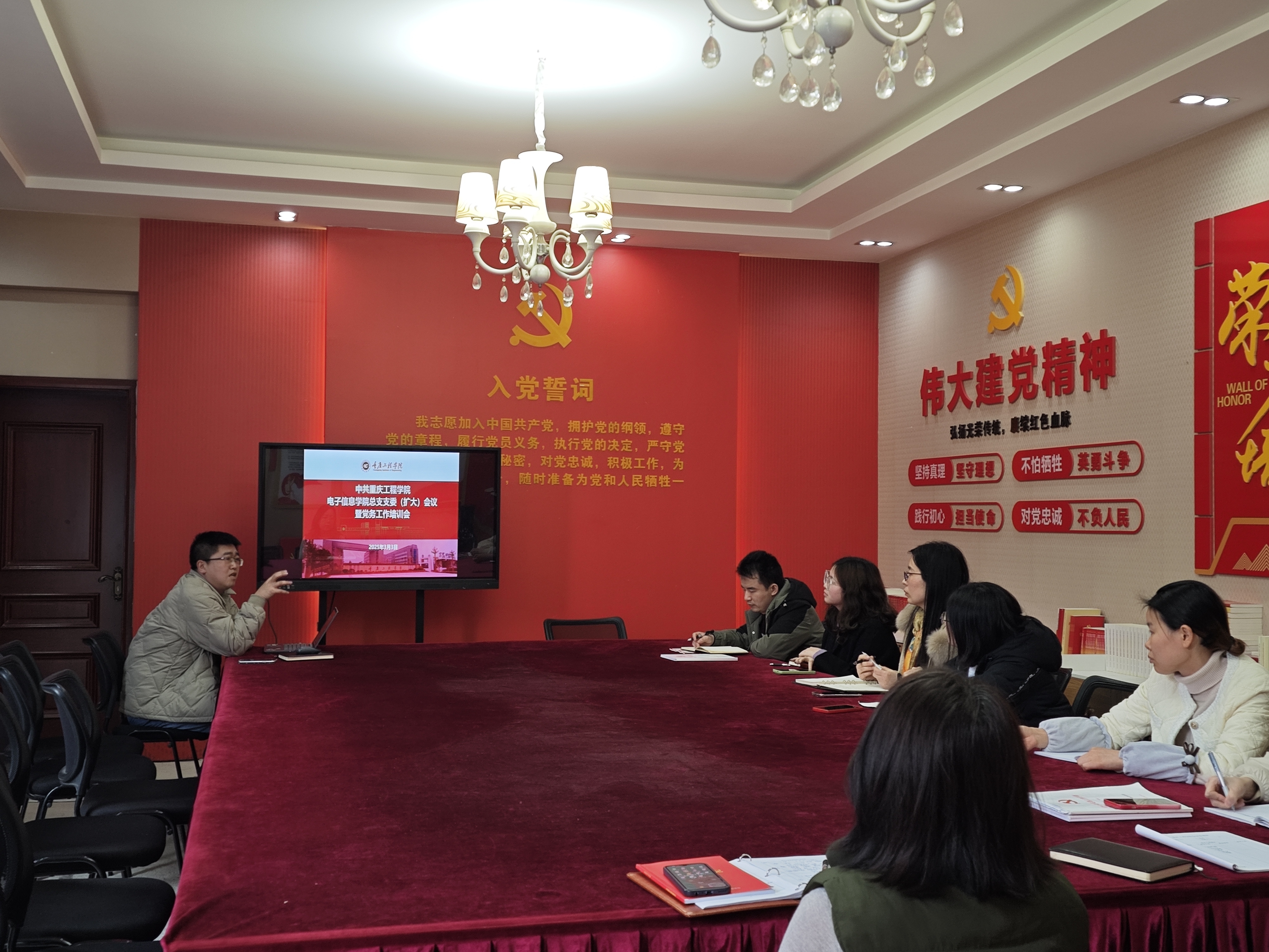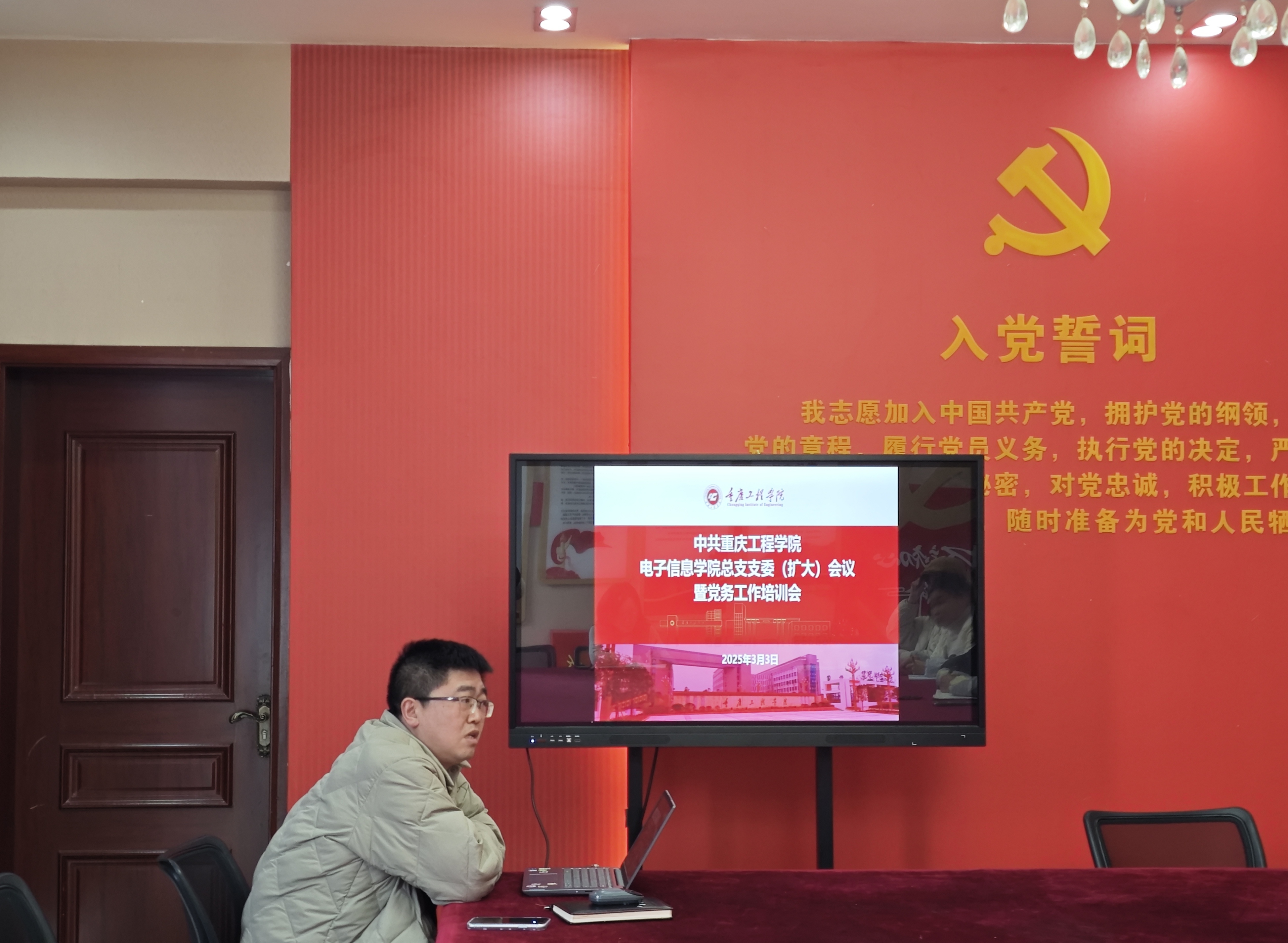 为进一步提升学院党务工作者业务能力,推动基层党组织标准化、规范化建设,电子信息学院党总支于3月3日在党员活动室召开了党务工作培训会。会议由学院党总支书记谭思宇同志主持,各支部书记、支部委员参加。