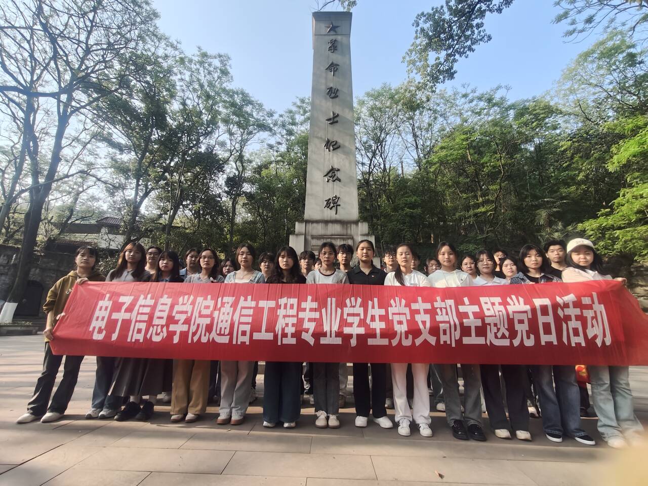 2025年4月9日,电子信息学院电子信息工程专业、通信工程专业学生党支部组织党员及发展对象前往重庆南泉烈士陵园,开展“承先辈遗志,绽青春担当”清明祭英烈主题党日活动,通过实地缅怀革命先烈,深化党史学习教育,激励青年党员传承红色基因、勇担时代使命。