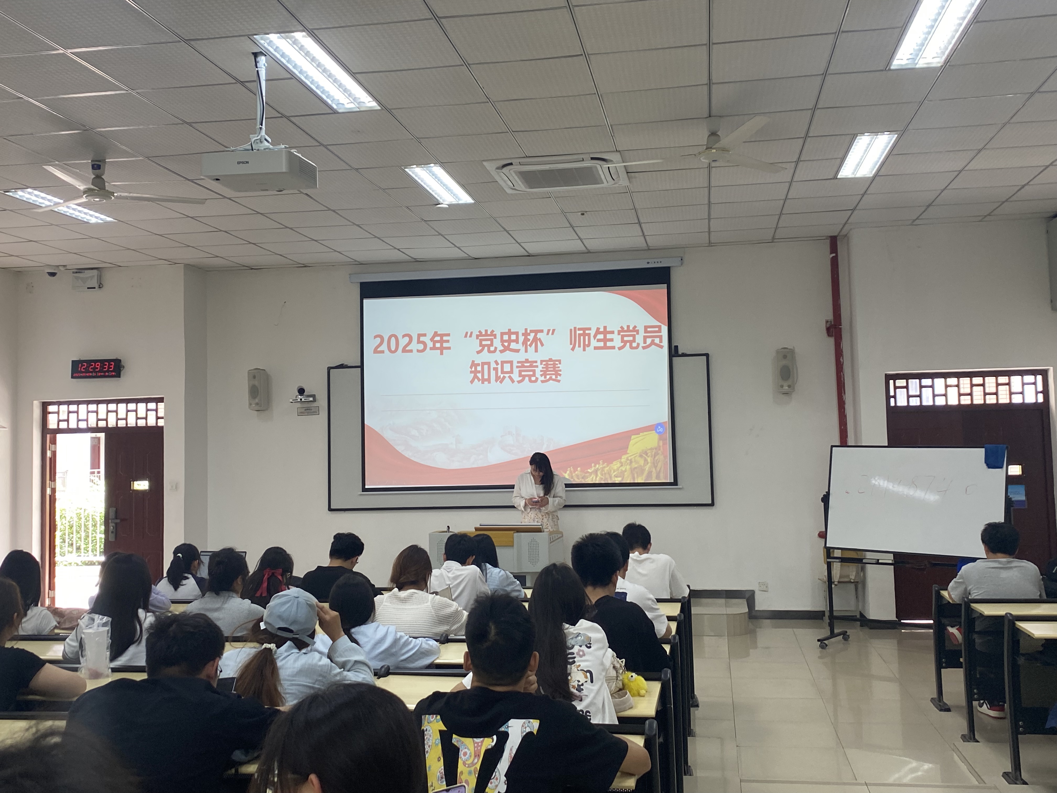 为巩固学生党员党史学习教育成果,5 月 9 日,电子信息学院学生党员实践教育分中心于6204开展2025年“党史杯”知识竞赛,学院入党积极分子、发展对象、预备党员、党员参与,共计72人。