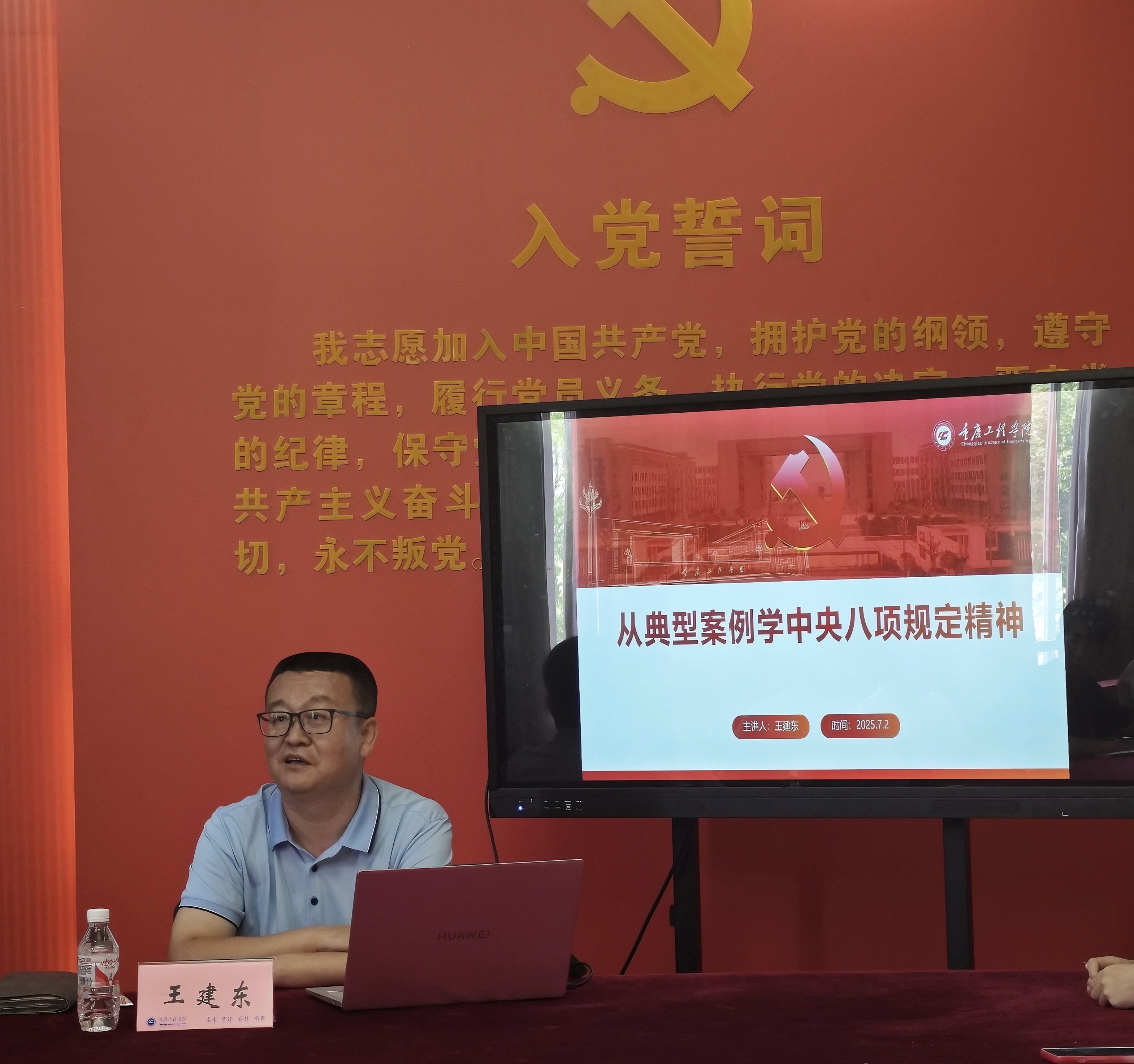 2025年7月2日,王建东副校长到电子信息学院开展深入贯彻中央八项规定精神专题党课,会议由电子信息学院党总支书记谭思宇主持,智能制造学院党总支书记刘达斌、电子信息学院与智能制造学院教师党员及学生党员参加。