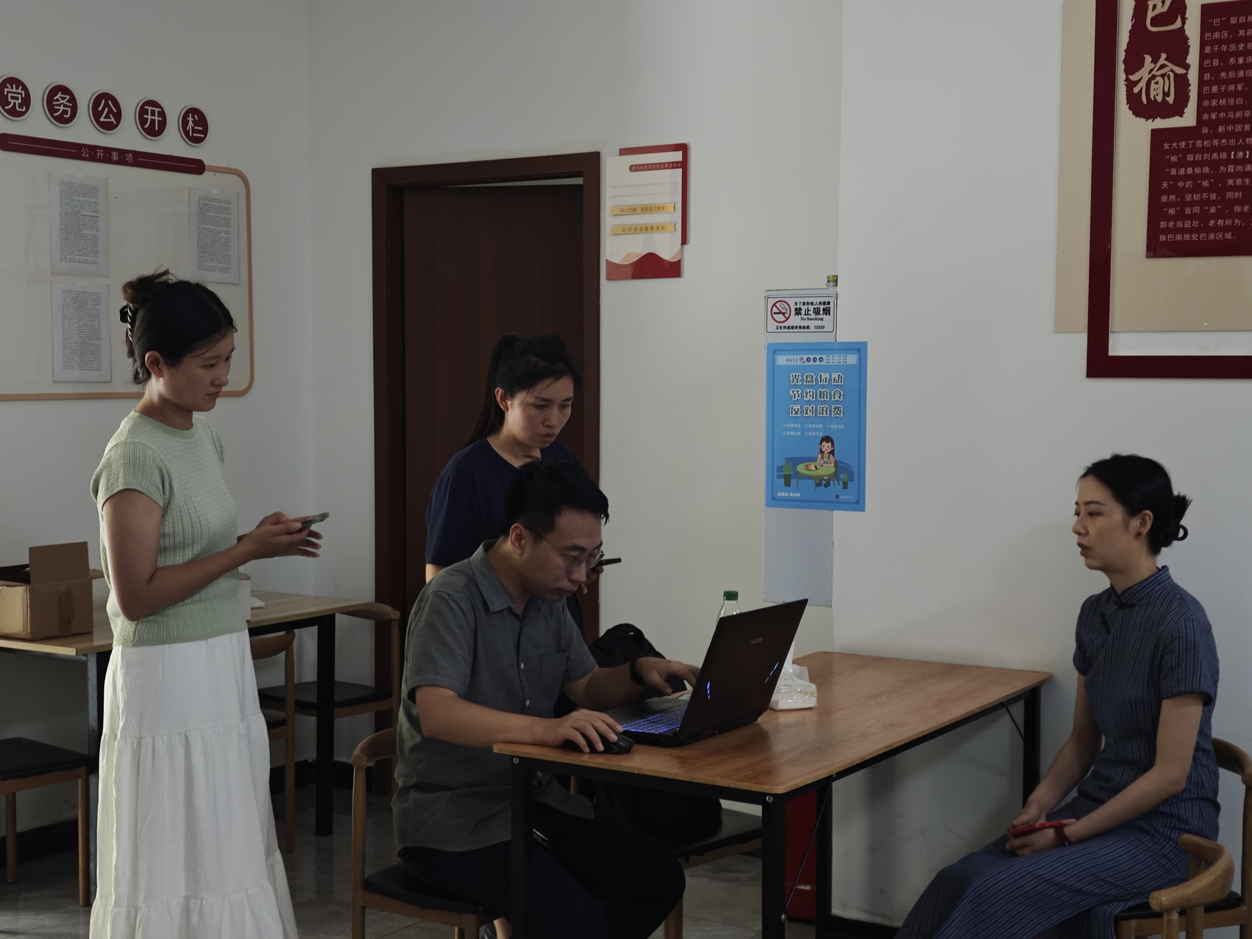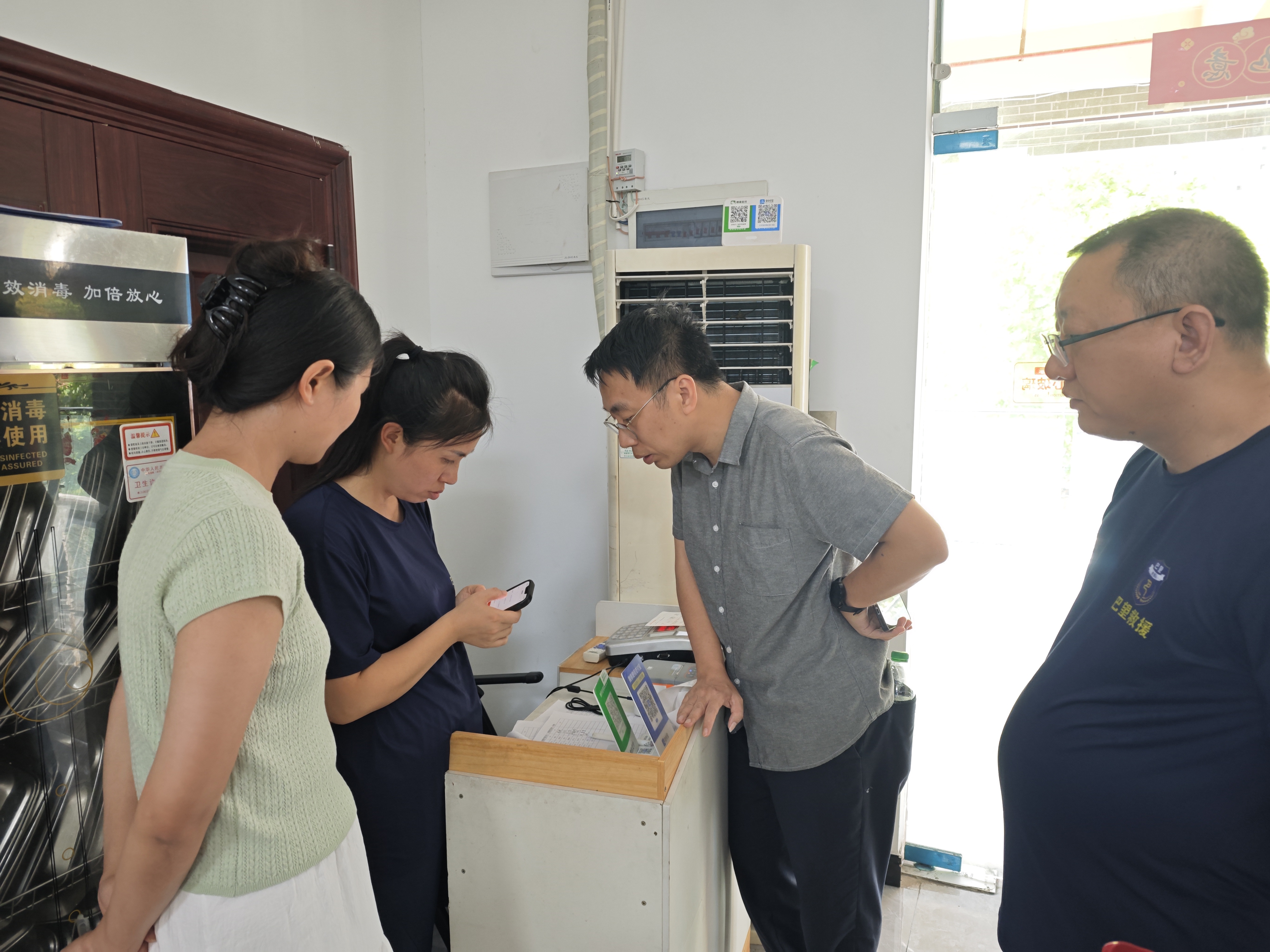本次交流旨在推动“数字赋能乡村振兴共享食堂信息化建设的探索与实践”项目落实落地,谭思宇书记一行与箭和社区主任及重庆保源环保科技有限公司总经理盛友力等进行了深入交谈。会上,双方围绕“数字赋能乡村振兴共享食堂信息化建设”这一核心议题展开了务实探讨。随后陈凌到社区食堂对“吾之老”共享社区食堂APP进行技术调试和试运营指导,为后续在社区食堂全面推广奠定坚实的技术基础。