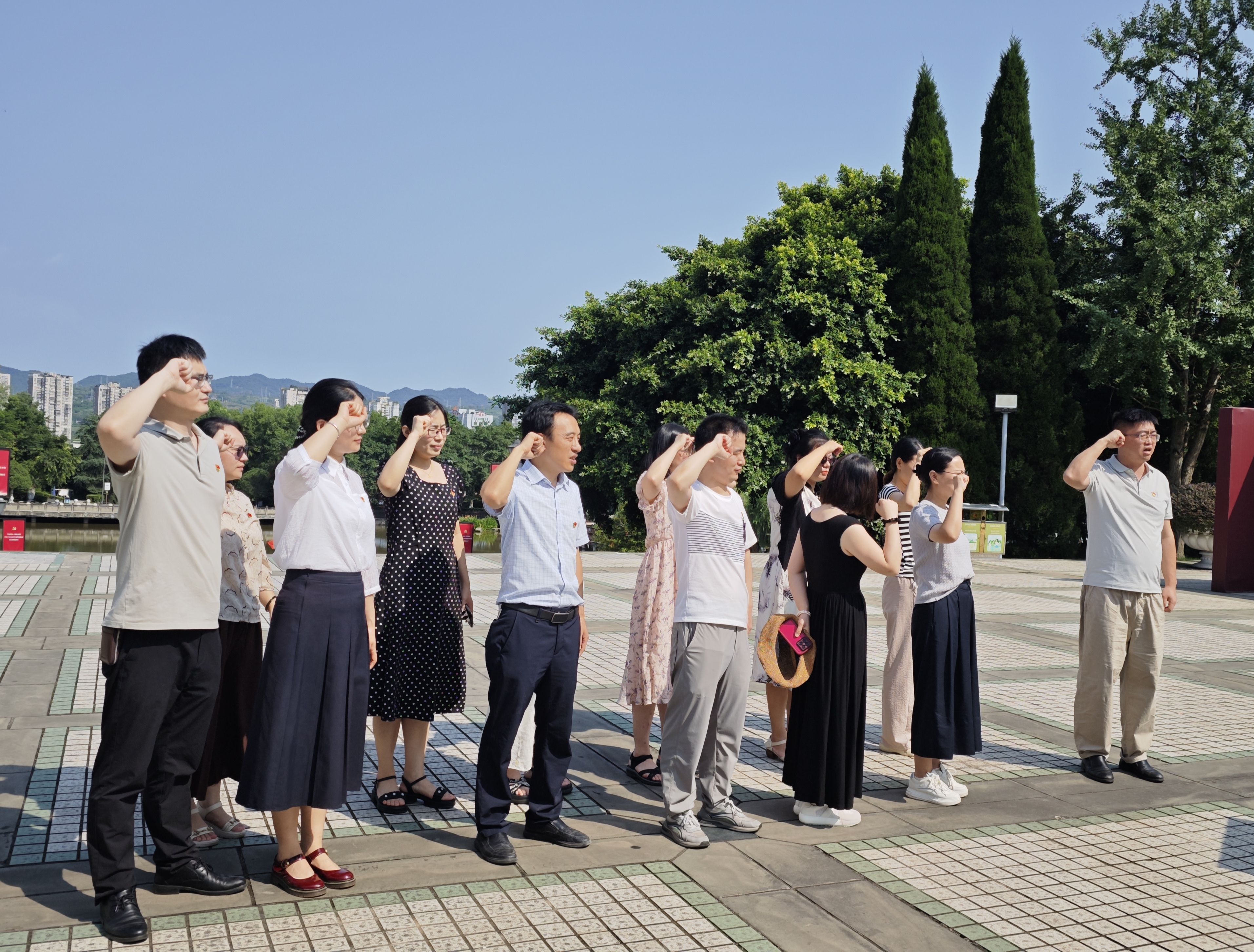 活动伊始,在庄严肃穆的聂荣臻元帅塑像前,全体党员在党总支书记谭思宇同志领誓下,重温入党誓词,铿锵有力的誓言回荡在陈列馆广场,表达了全体党员不忘初心、为党事业奋斗终身的决心。