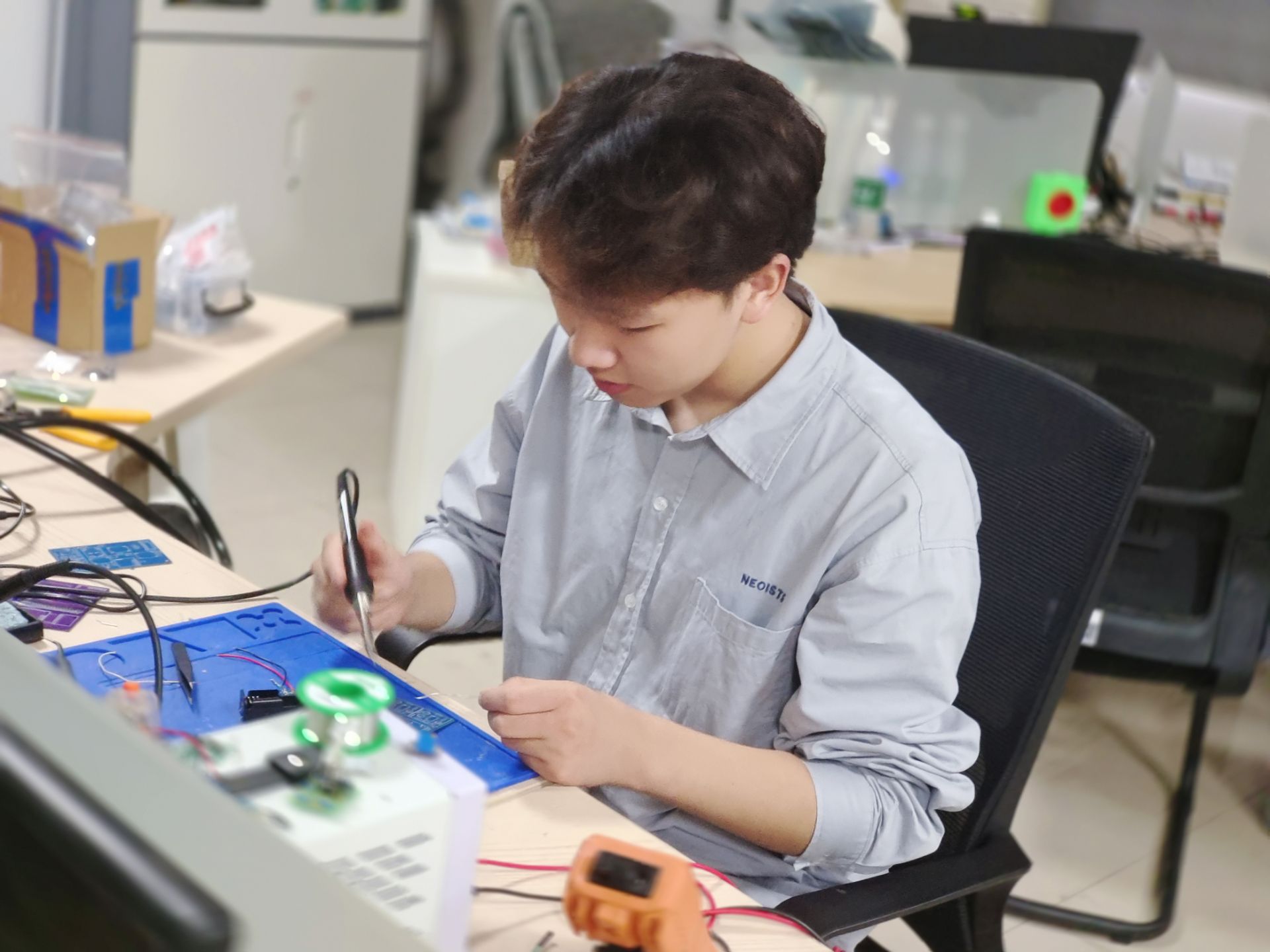 电子信息学院完善的育人体系为杜鑫的成长提供了有力支撑。学院搭建的电子实验中心、智能互联应用创新中心、信息通信技术研究中心等平台,让他从理论走向实践,从课堂走向实战。作为电子实验中心助理和后期机器人与通信技术中心负责人,他在这些平台上锻炼了专业实践能力和组织协调能力。