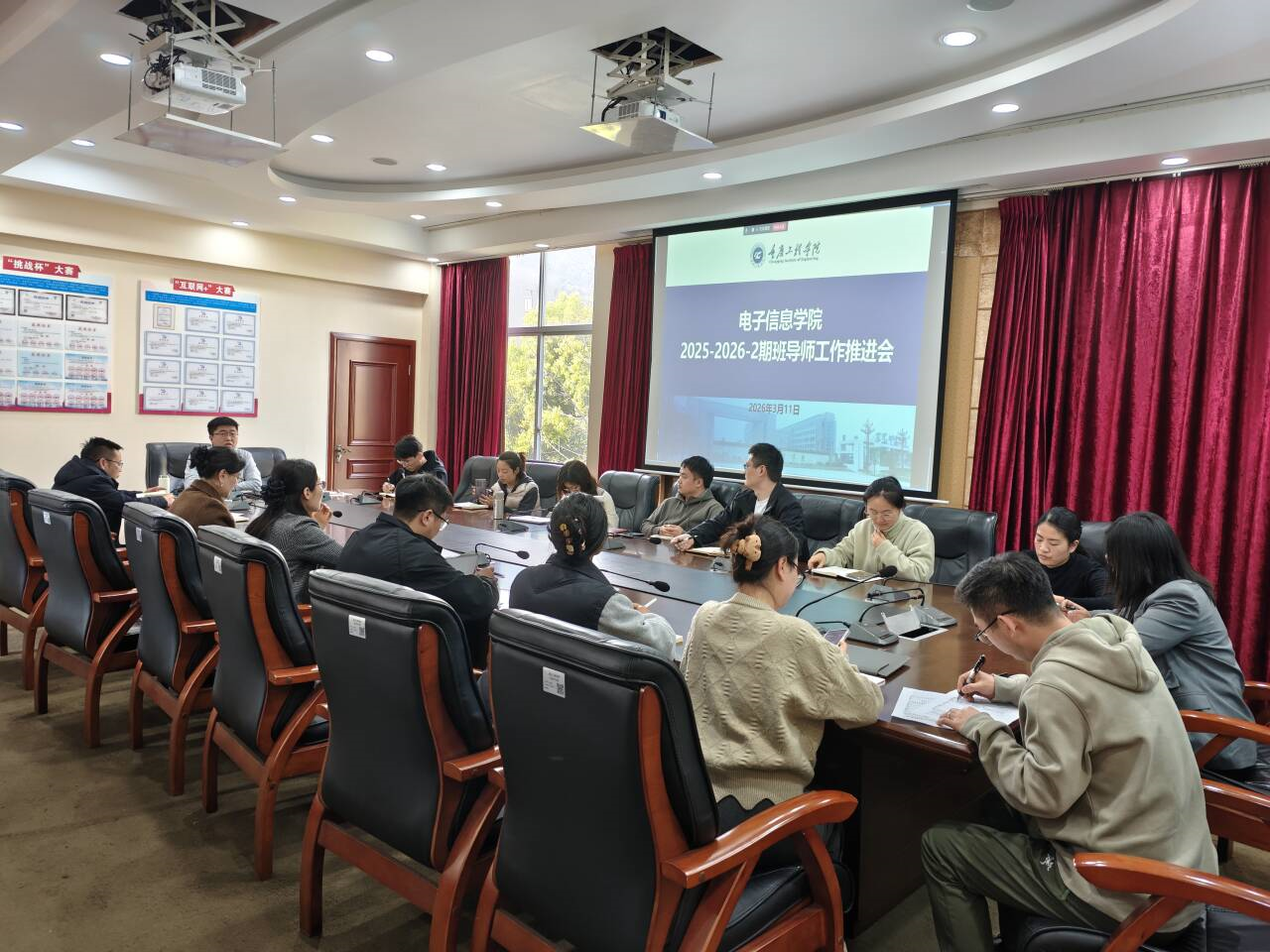 为进一步加强班导师队伍建设,深化学生教育管理与服务工作,电子信息学院于11日下午召开班导师工作会,由学院书记谭思宇主持,全体班导师参加。