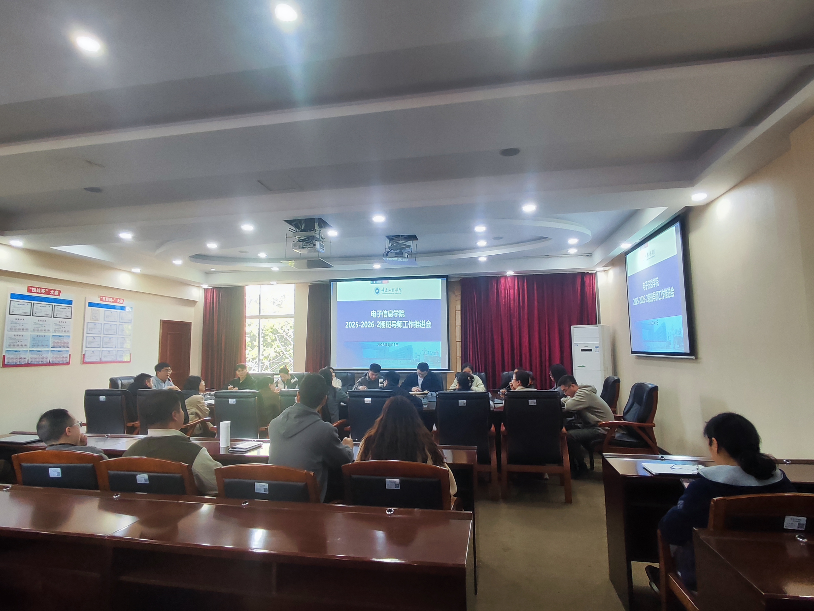 3 月 11 日下午,电子信息学院在 212 会议室召开 2025-2026-2 学期第二次全院大会,双桥校区教师线上同步参会。会议围绕政治理论学习、教学创新培训、就业工作推进、班导师工作部署四大板块展开,全院教职工共谋学期新发展。