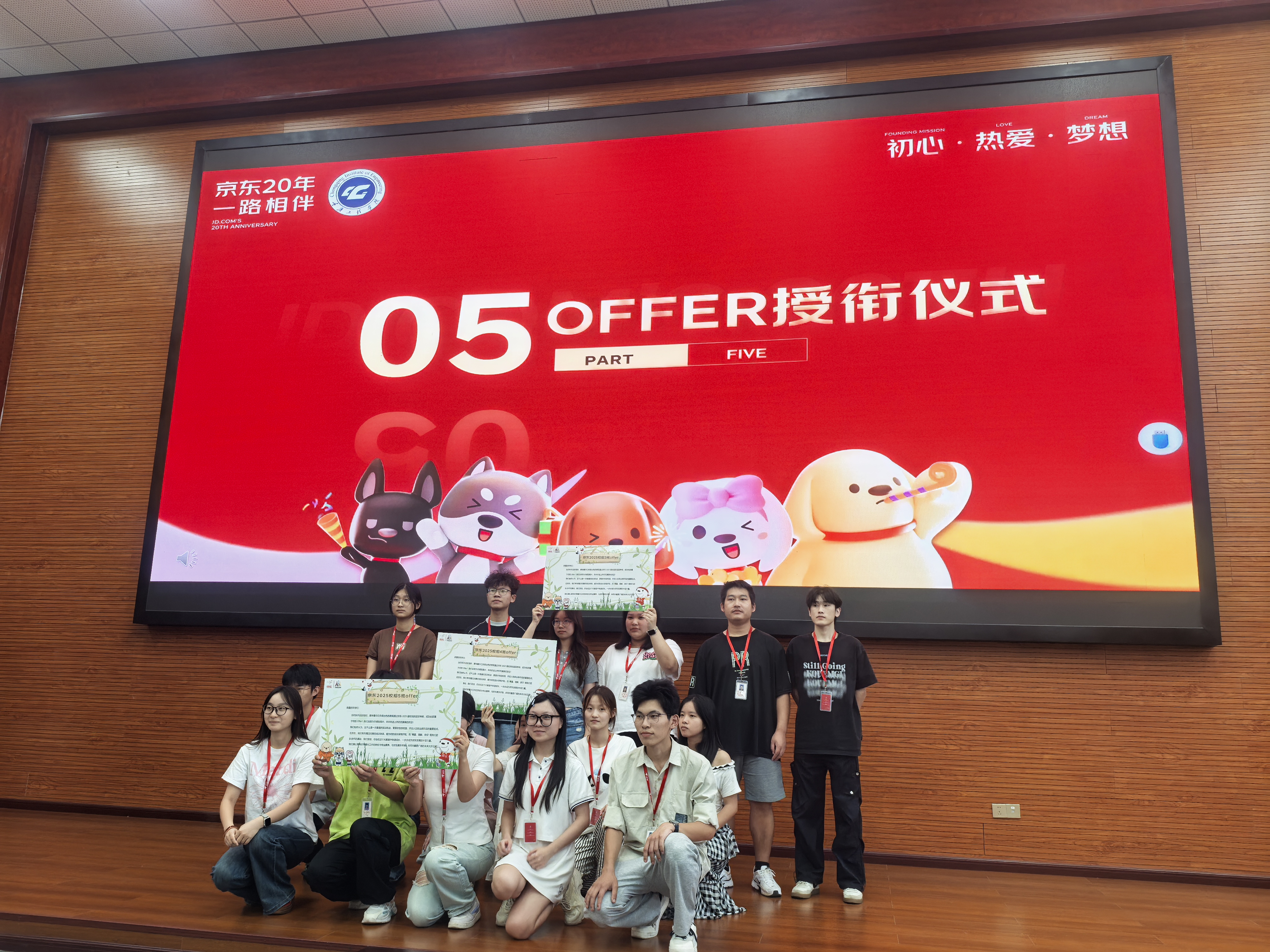 表彰结束后,京东OFFER授衔仪式顺利举行,这标志着全体学生顺利通过培训环节,为后续实训环节奠定基础。实训优秀代表黄春雨同学分享了实训收获,她感谢了学校与企业的支持,并表示将以更加饱满的热情投入后续学习与实训。