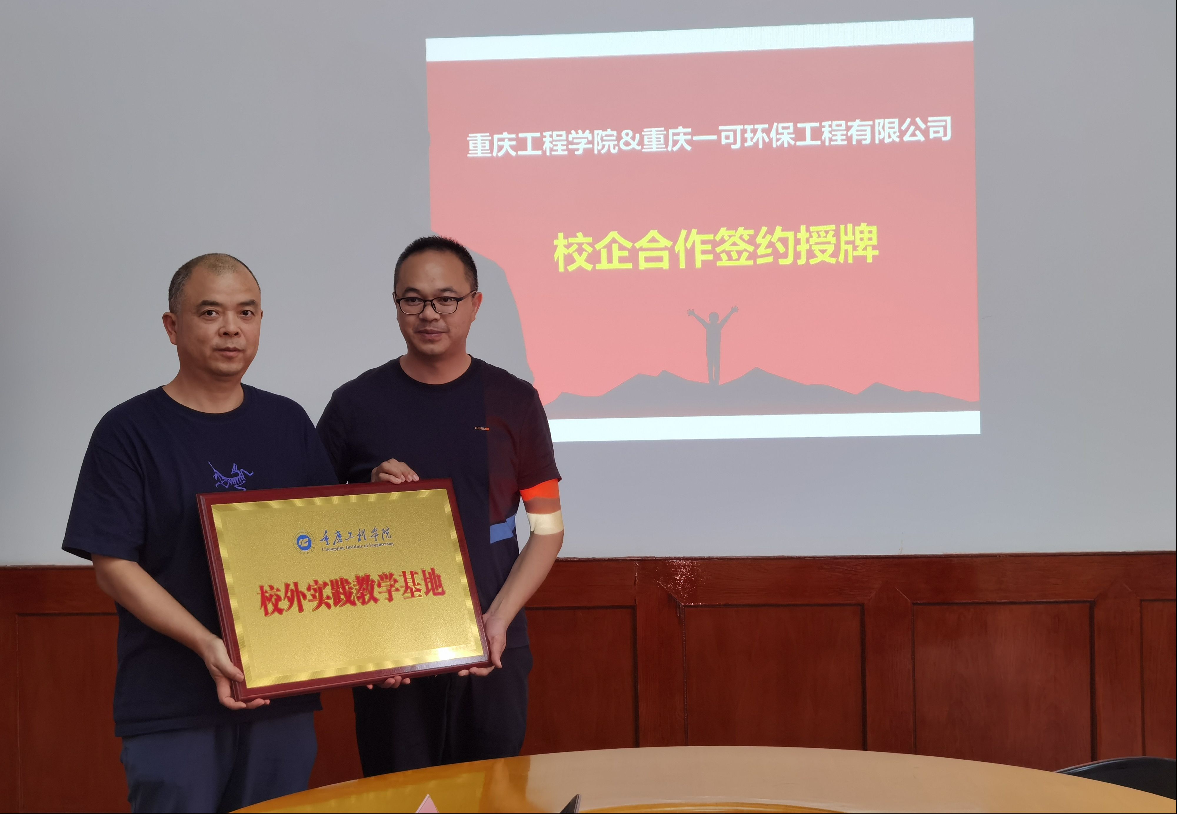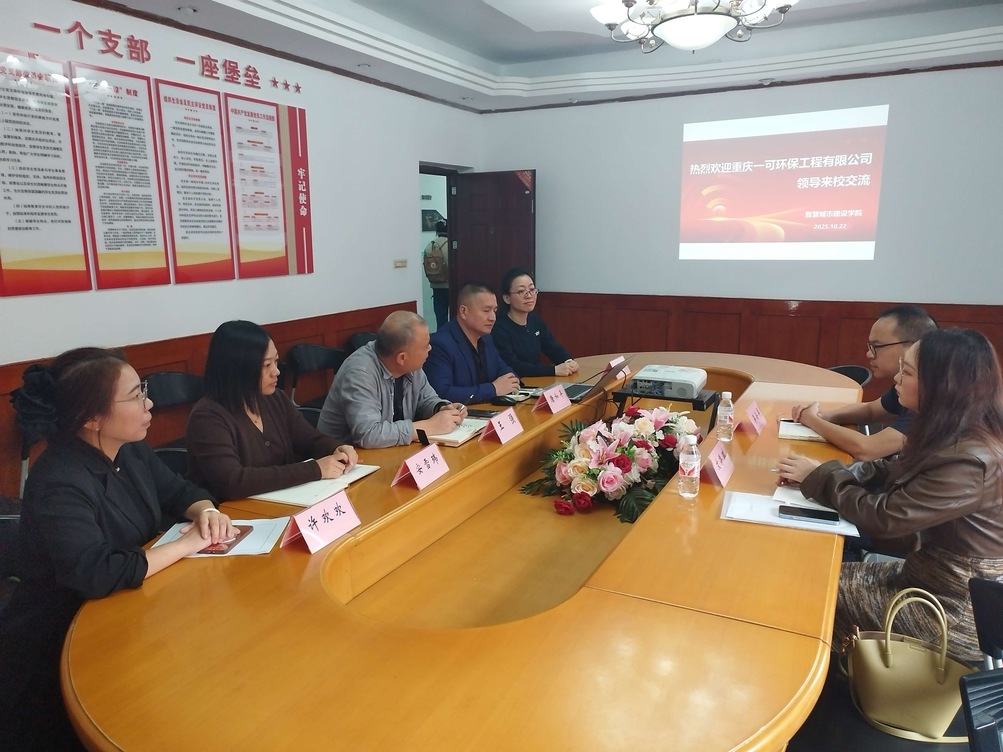 本网讯(文/图 王红梅) 10月22日,重庆一可环保工程有限公司(下称 “一可公司”)与我校智慧城市建设学院在一教办公楼212会议室进行校企合作交流,双方举行了校企战略合作签约暨授牌仪式。
