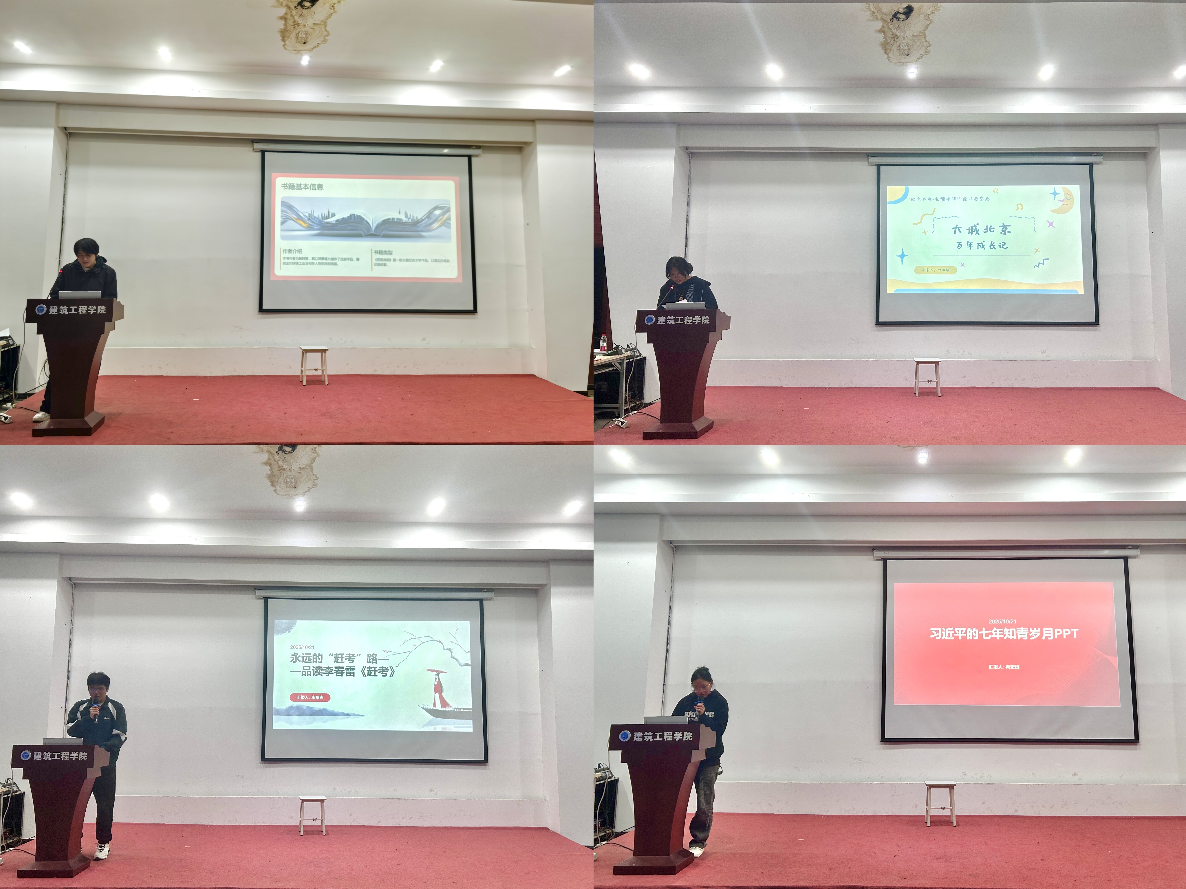 活动中,同学们依次上台后结合书籍片段畅谈阅读体会与感悟。有的同学通过讲述革命先辈的坚定信仰与不屈精神,激励大家铭记历史、砥砺前行;有的同学通过剖析主人公在时代洪流中的成长与抉择,唤起对理想与责任的思考;还有同学结合自身实际,探讨青年如何在实践中锤炼品格、担当使命。分享者情感真挚,现场氛围庄重而热烈。活动最后,智慧城市建设学院蒋芳旋老师和本次演讲的同学进行合影留念。