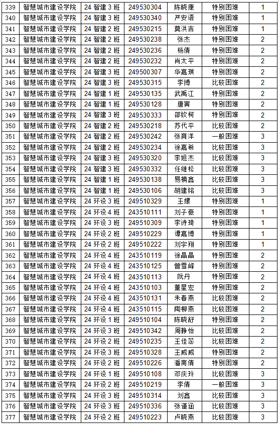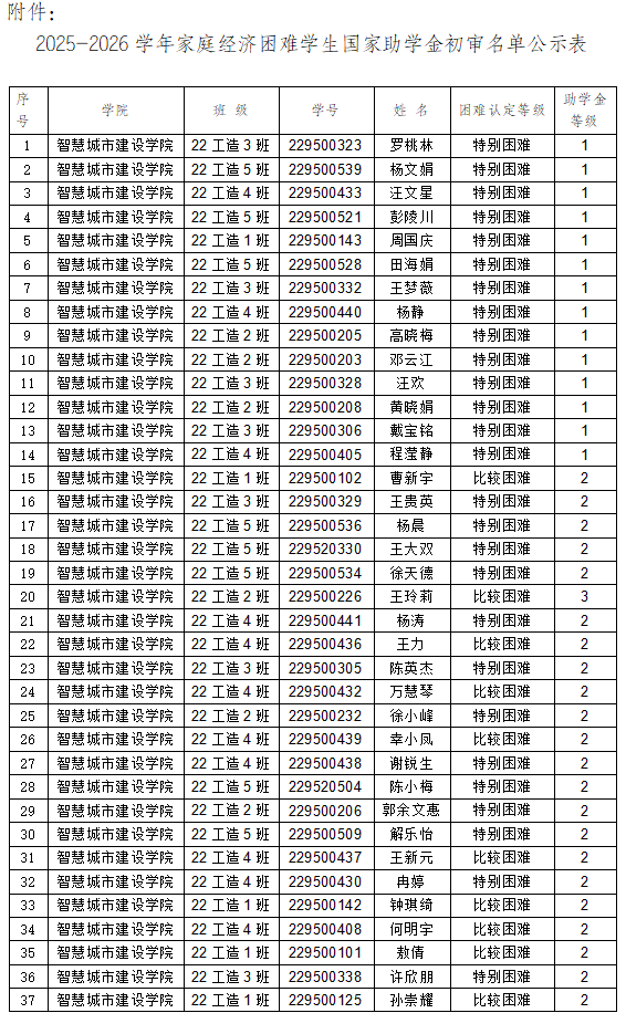 重庆工程学院2025-2026学年家庭经济困难学生国家助学金初审名单公示表