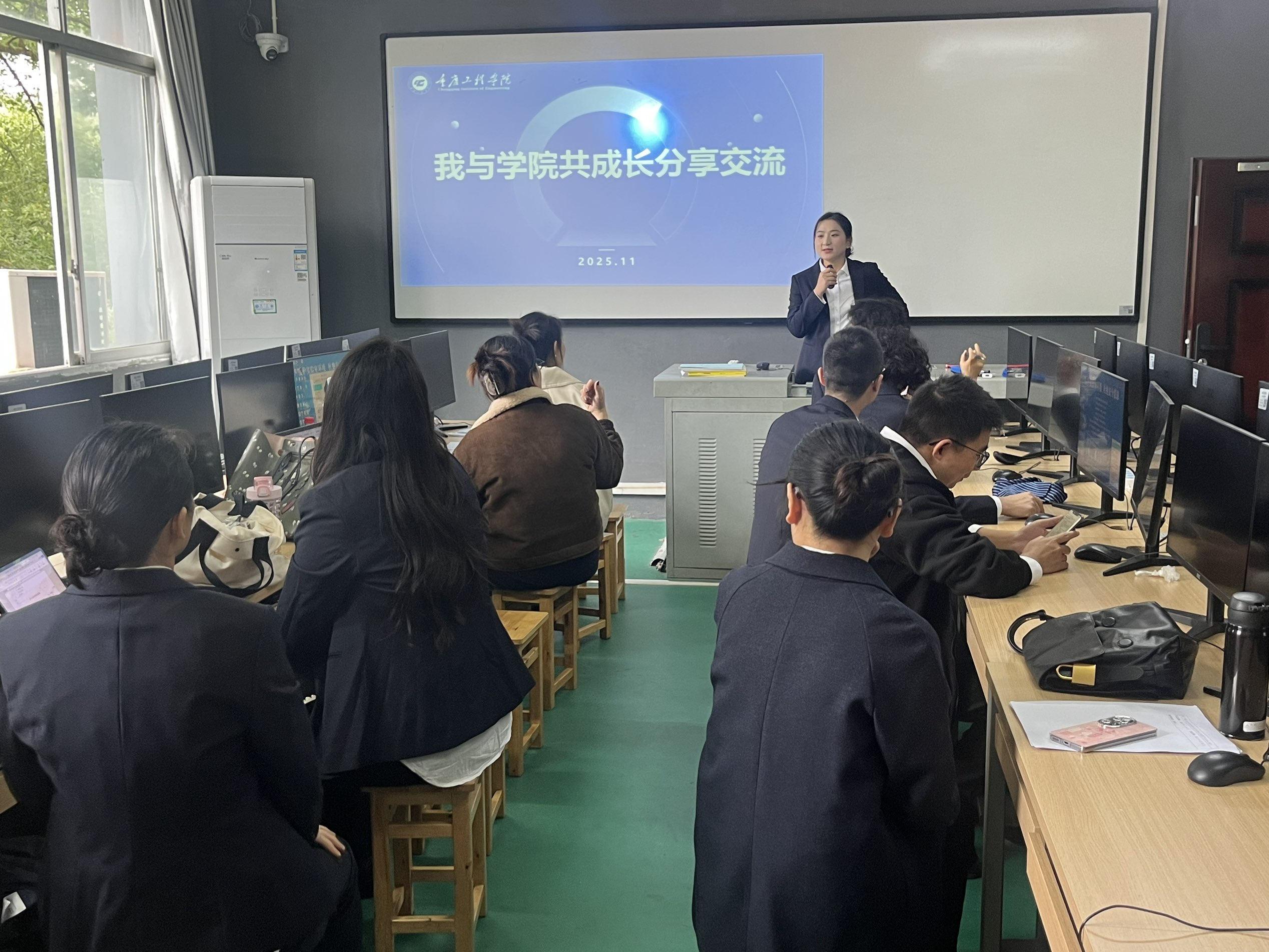 本网讯(图/文 俸语威) 为积极响应学院发展转型战略,11月12日,环境设计系在1教1206教室成功举办“我与学院共成长——凝心聚力,共绘转型发展新蓝图”专题活动。会议深入探讨了在人工智能技术迅猛发展的背景下,环境设计专业的未来发展方向与教育变革路径。会议由杨玥主任主持,李颖院长列席会议。