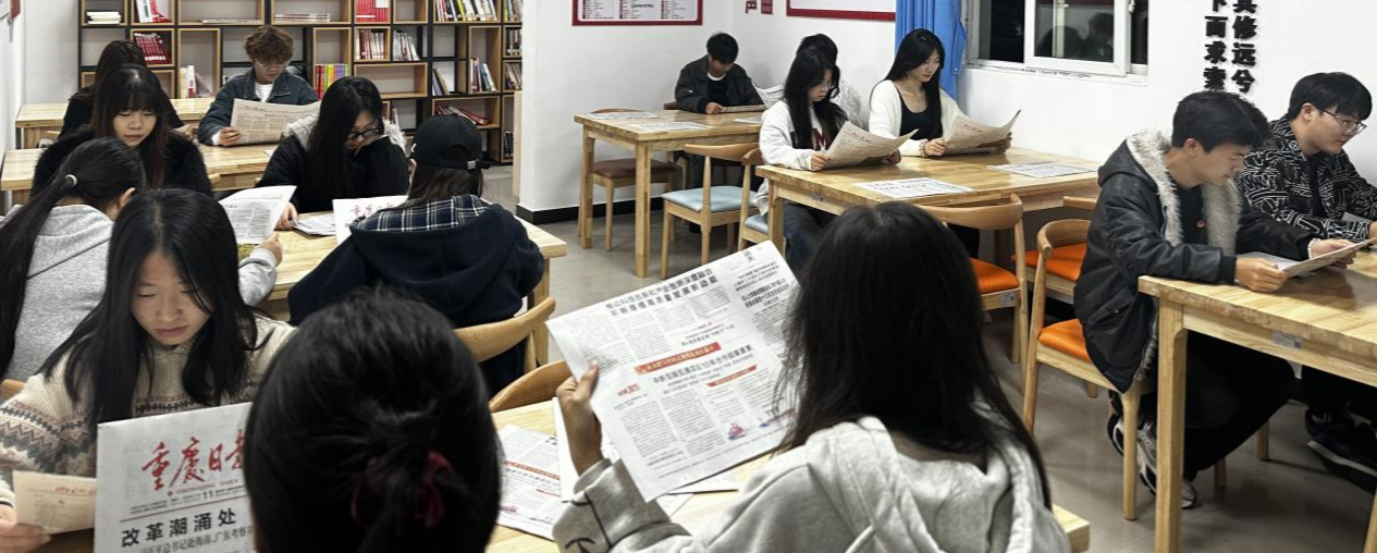本期活动紧扣《重庆日报》“改革潮涌处,开放海天阔”专题报道及“学习强国”平台“高质量推进国防和军队现代化”主题。同学们深入学习新时代全面深化改革与高水平对外开放的重大部署,结合重庆发展实际,围绕区域协同、科技创新等议题展开热烈讨论;同时通过“学习强国”平台专题学习,深刻领会国防和军队现代化建设的战略意义,进一步增强家国情怀与使命担当。