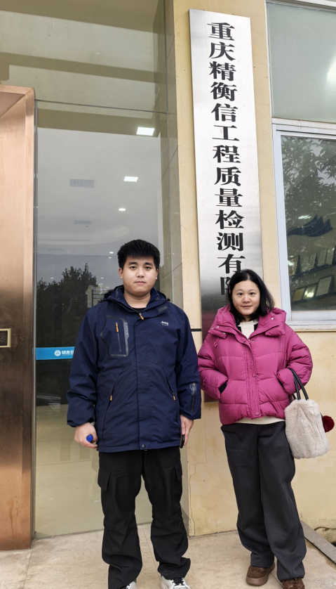 本网讯(文/图 涂祖玲)为深入了解学生实习情况,加强校企联动,2025年12月25日下午,土木工程专业辅导员涂祖玲走访了重庆精衡信工程质量检测有限责任公司,看望在此实习的土木工程专业学生潘同学。