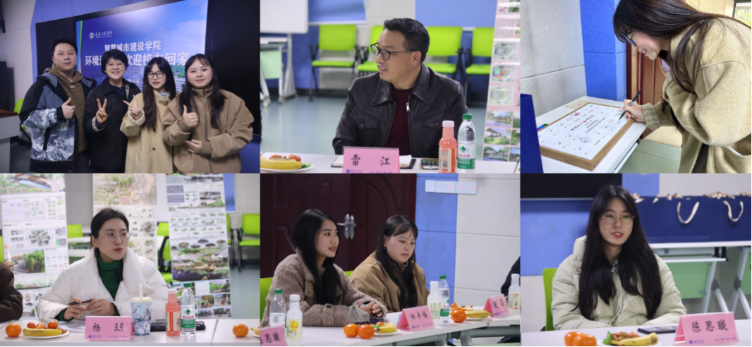 活动伊始,系主任杨玥致辞,回顾了环境设计专业自创办以来八年的发展历程,重点介绍了专业在课程体系升级方面的成果,包括生成式艺术与空间创作、数字孪生与人居系统表达、环境大数据分析与应用等前沿课程的开设与落地,展现了专业紧跟行业趋势、深耕人才培养的发展理念。院长雷江、院长助理李颖全程参与交流研讨,结合学院学科建设规划与就业工作部署,与校友们深入探讨了环境设计专业与智慧城市建设深度融合的路径,鼓励校友们立足行业前沿、发挥专业优势,同时寄语在校学子珍惜学习机会、主动对接行业需求、锤炼核心技能。