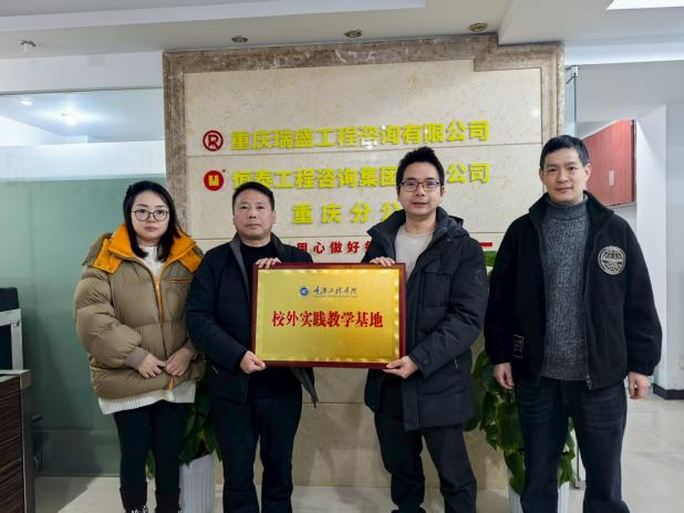 本网讯(图/文 张晓峰) 1月22日下午,重庆工程学院智慧城市建设学院土木系主任林俊、教师张晓峰一行赴重庆瑞盛工程咨询有限公司开展走访调研,并正式授予该公司“校外实践教学基地”牌匾,标志着双方校企合作迈入实质性阶段。公司李总进行了热情接待。