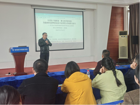 雷江院长组织传达学习了王万均理事长在2025年总结大会及孙芳城校长在2026年春季学期开学干部大会上的讲话精神,要求全体教职工深入学习、反复领悟两位领导讲话精髓,将思想与行动高度统一于学校发展大局,准确把握新形势下的机遇与挑战,增强改革创新的自觉性与主动性,进一步凝心聚力、提振精神,围绕学校中心工作,在教育教学、科研创新、招生就业等各条战线展现新作为,为学校内涵建设与特色发展贡献智慧与力量。