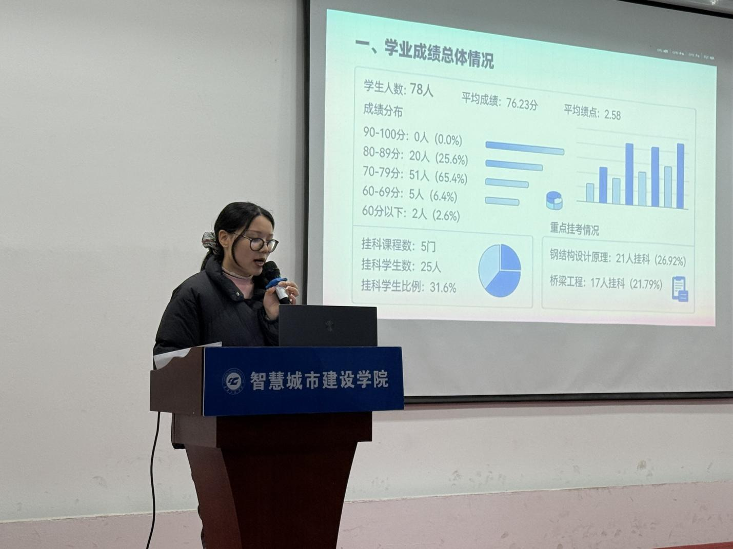 班会伊始,辅导员们围绕课程成绩、考勤情况、作业完成质量、学分绩点、挂科情况、学业预警等关键数据,对班级整体学情进行客观、细致、全面的分析,清晰呈现各专业学生在专业基础、学习态度、时间管理、自主学习能力等方面的优势与不足。随后,各位辅导员结合智慧城市、智能建造、大数据技术、城市信息化管理等专业特点,辅导员重点剖析了核心课程学习难点、实践环节参与度、专业竞赛参与情况等问题,帮助学生找准差距、正视问题、明确方向。班会最后,辅导员们引导学生结合自身特长,制定清晰的学业与职业规划,避免盲目跟风,找准自身定位。